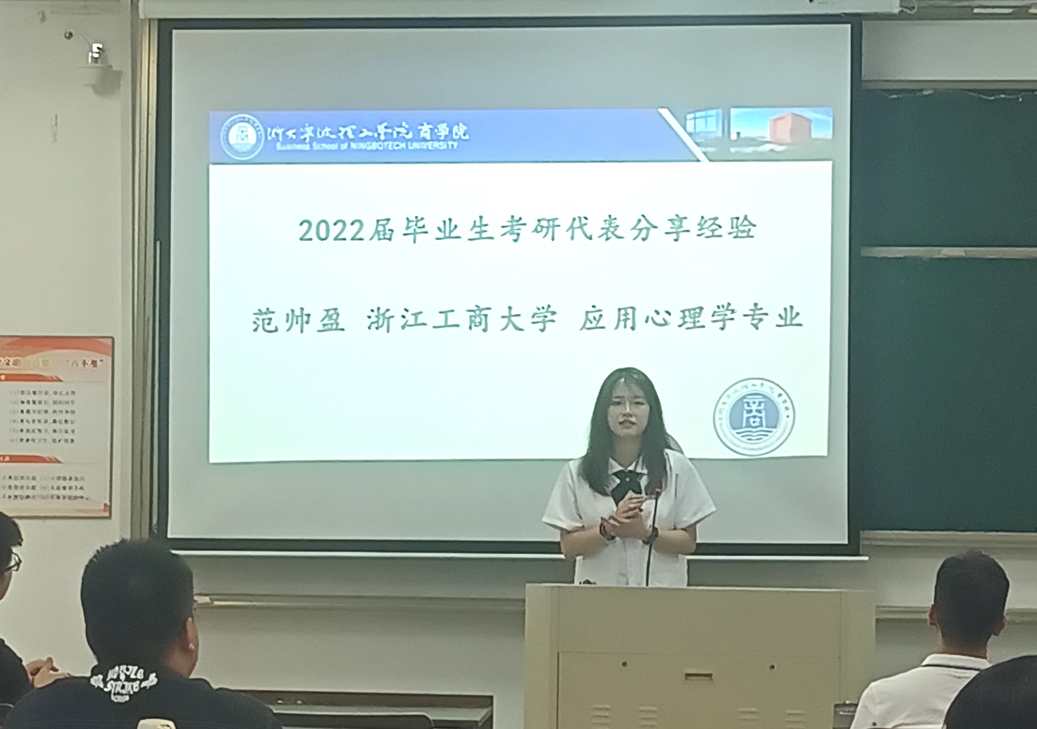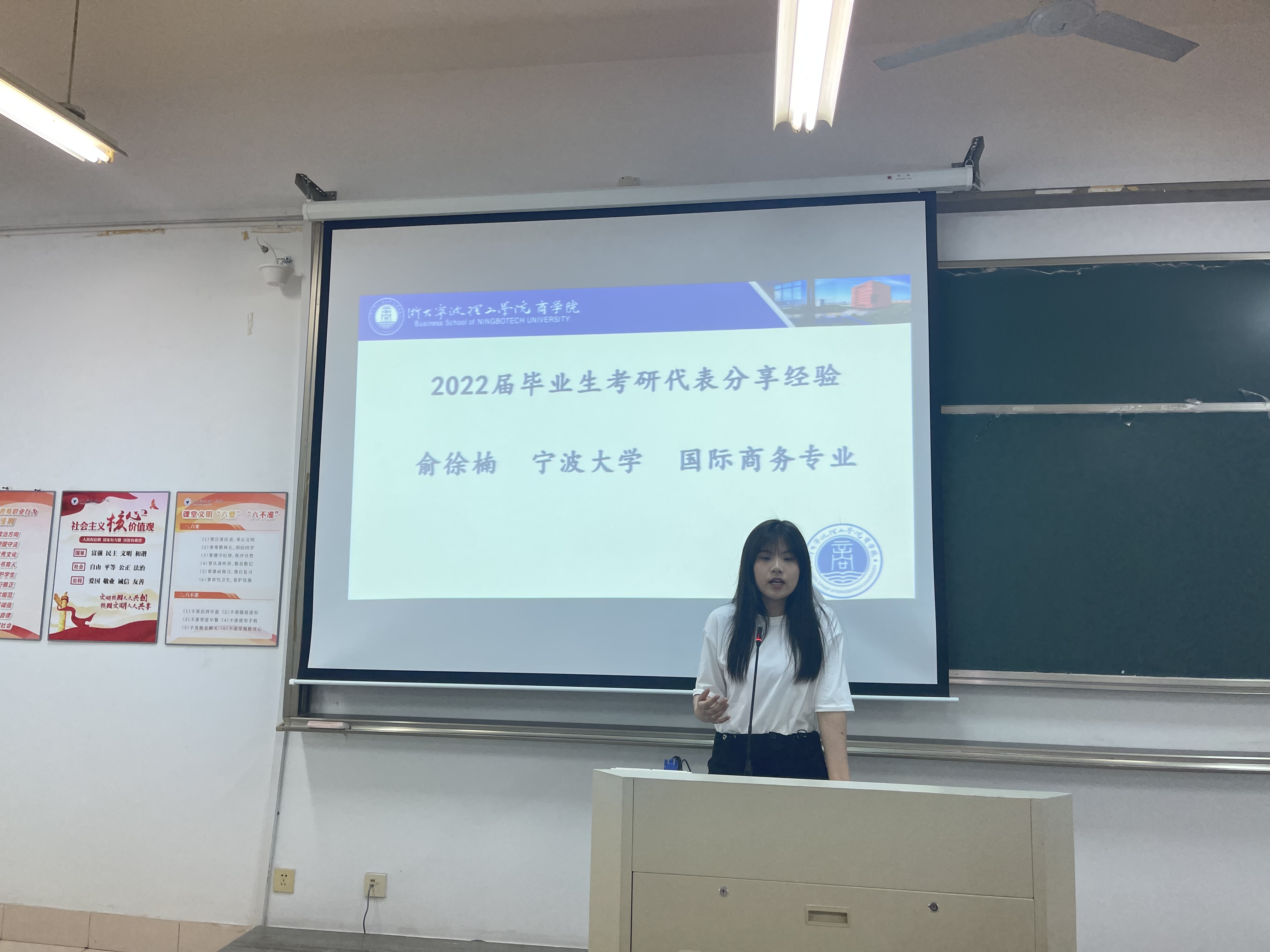 考研优秀代表俞徐楠同学,从拒绝诱惑、拒绝焦虑两个方面,为同学们带了不一样的考研经历,她希望下一届学弟学妹们能在考研中取得优异的成绩。