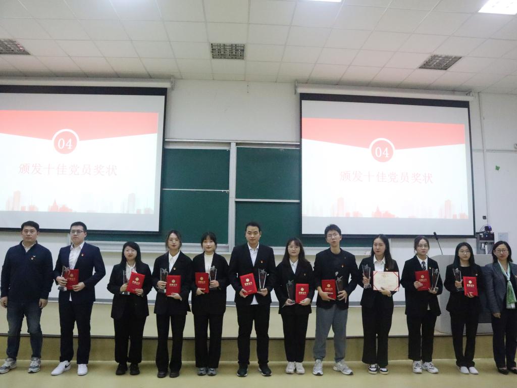 经过紧张激烈的角逐,现场评选出yl23411永利官网登录十佳党员(以下排名不分先后),分别是来自员工财管专业党支部的黄鸿宇和郑佳敏、员工物流专业党支部的蒋薇、员工电商专业党支部的孔梦瑶、员工物流专业党支部的江通、员工工商管理党支部的曾鸮露和俞佳雯、员工国贸专业党支部的王亍亍、员工物流专业党支部的翁莎莎以及员工金融专业第二党支部的潘奕利。吴琼老师依次为yl23411永利官网登录十佳党员颁发奖牌,马双龙老师为他们颁发证书。