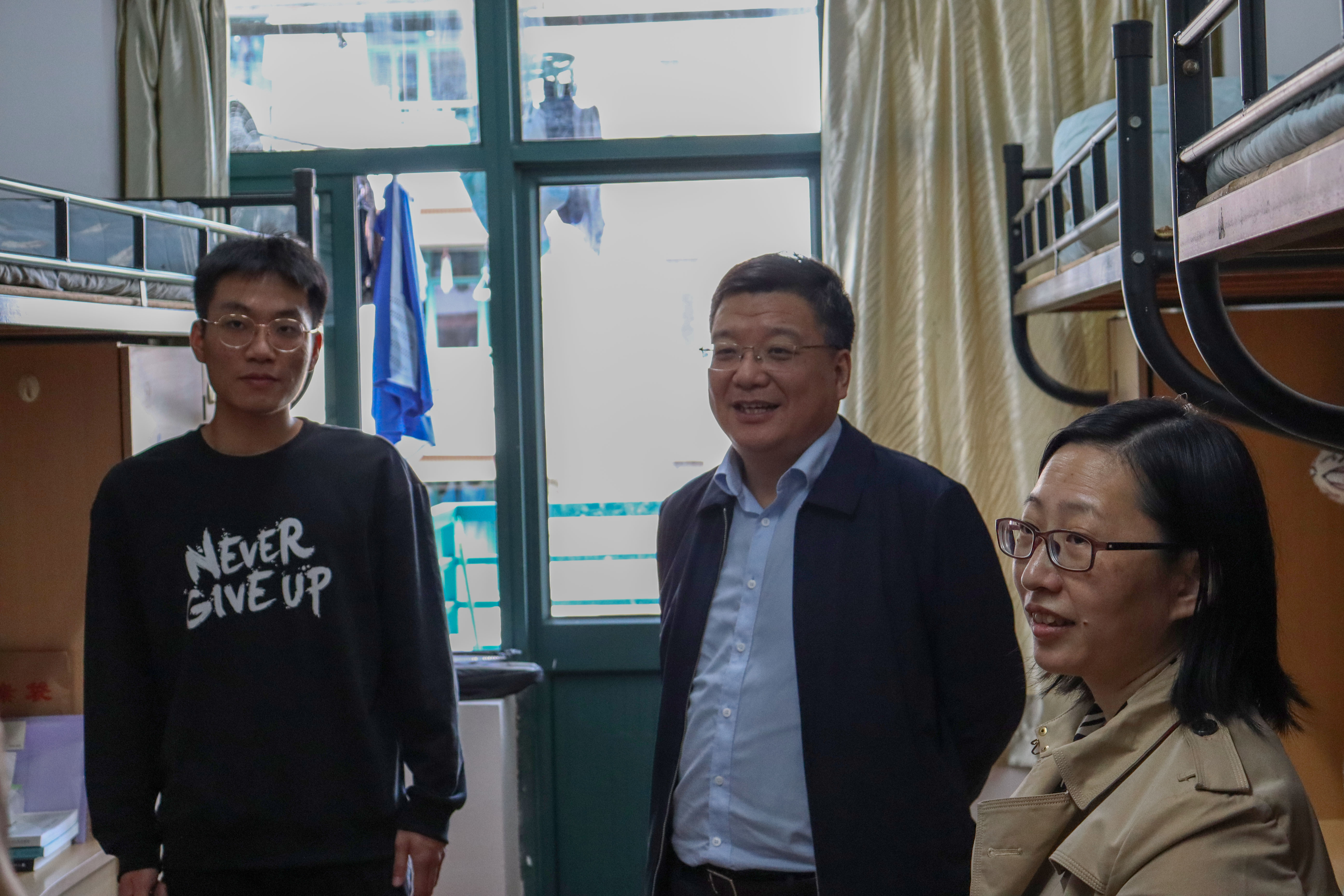 各位老师与同学们深入交谈,倾听同学们对公司发展、专业学习、宿舍管理以及疫情防控等方面的意见和建议。黄书记详细了解了联系寝室里各位同学的在校情况,鼓励同学们多读书,以学习党的二十大精神为契机,关注时事新闻,开拓视野,树立远大目标。他希望寝室里的各位同学能向优秀同学看齐,在青春的赛道上跑出当代青年的最好成绩。