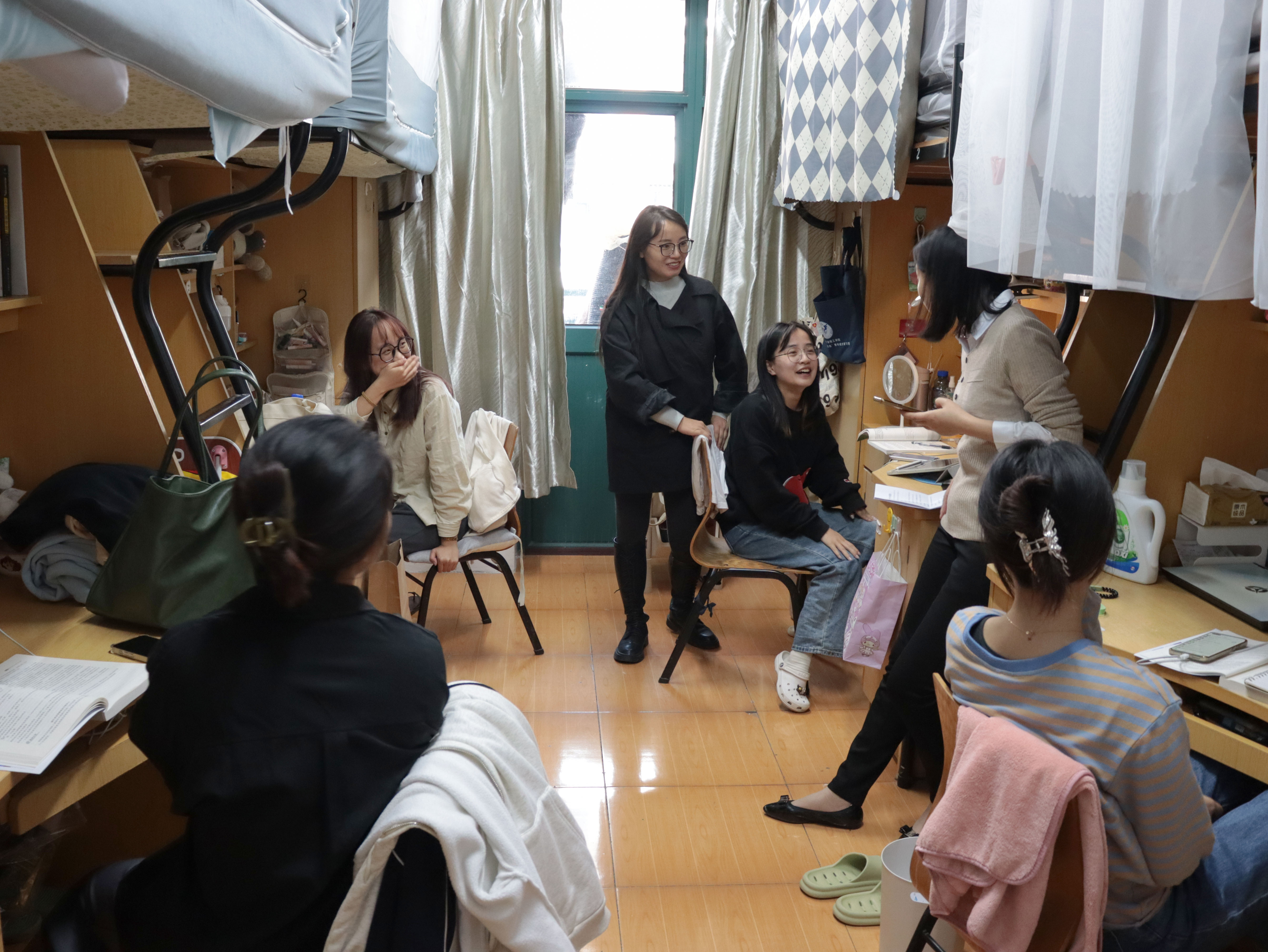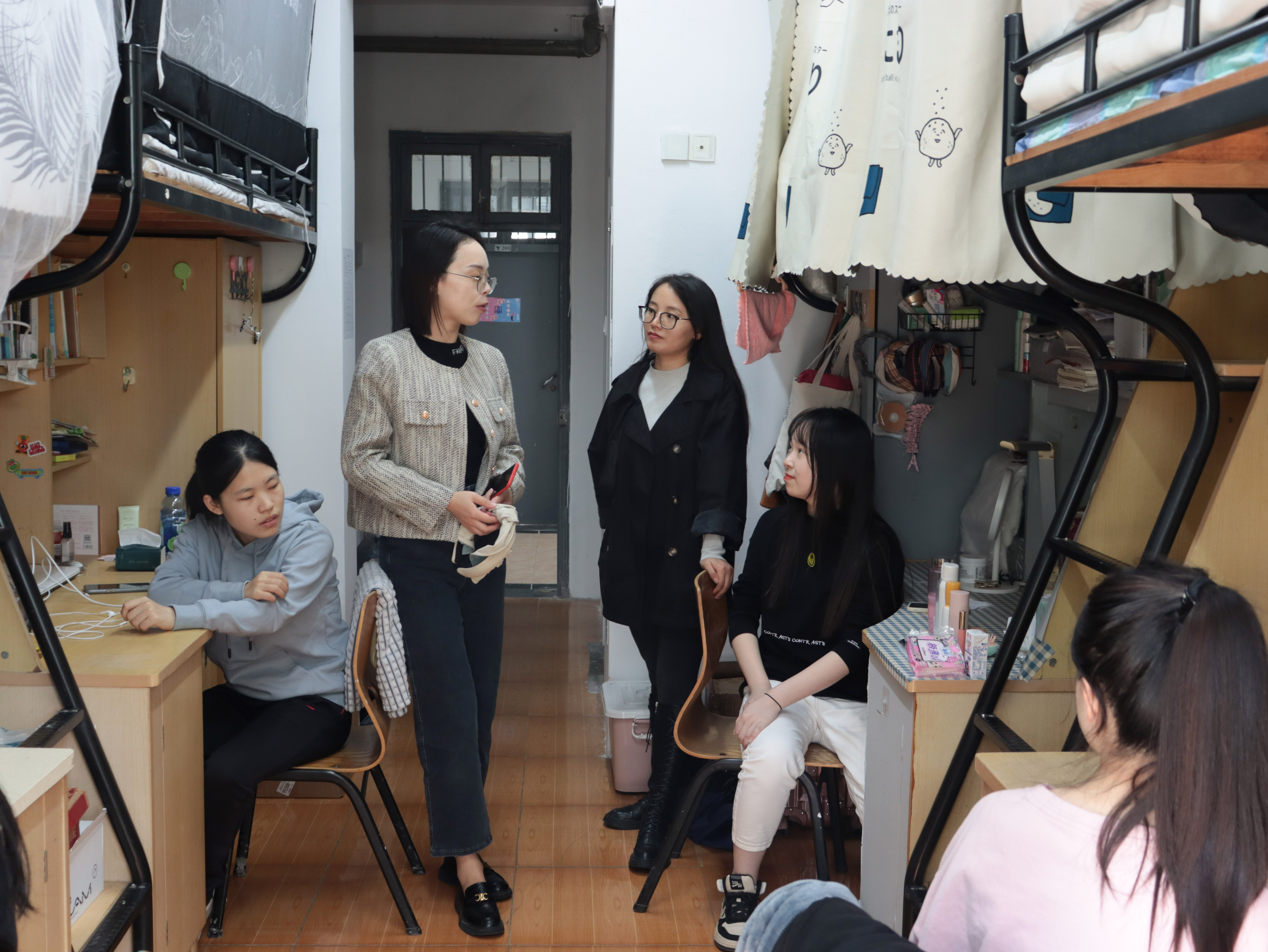 近日,公司党委委员、纪委书记黄光杰、yl23411永利官网登录经理苗青、公司党委书记兼执行经理林承亮等班子成员以及校纪检监察室副主任周丽娟、纪检监察室主管许琼波等干部,与yl23411永利官网登录的辅导员们一起深入yl23411永利官网登录员工宿舍,实地了解员工学习生活情况,为他们送去关心和问候。