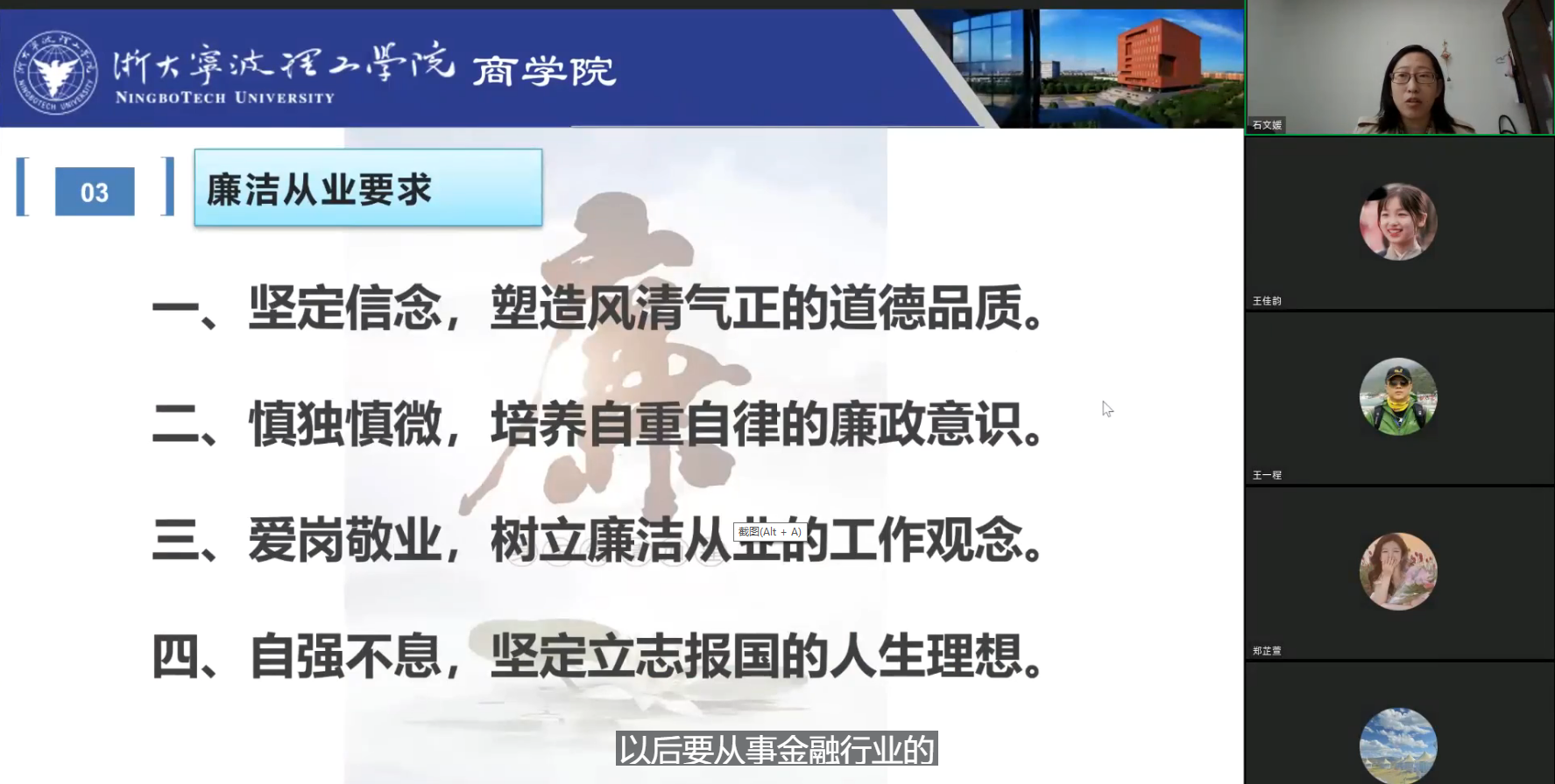 公司教务办主管王一程老师就毕业生教学相关事宜作重要提醒。他通报了毕业论文开题和答辩时间安排说明,提醒同学们把握好毕业论文的节奏,认真完成论文的各项工作。