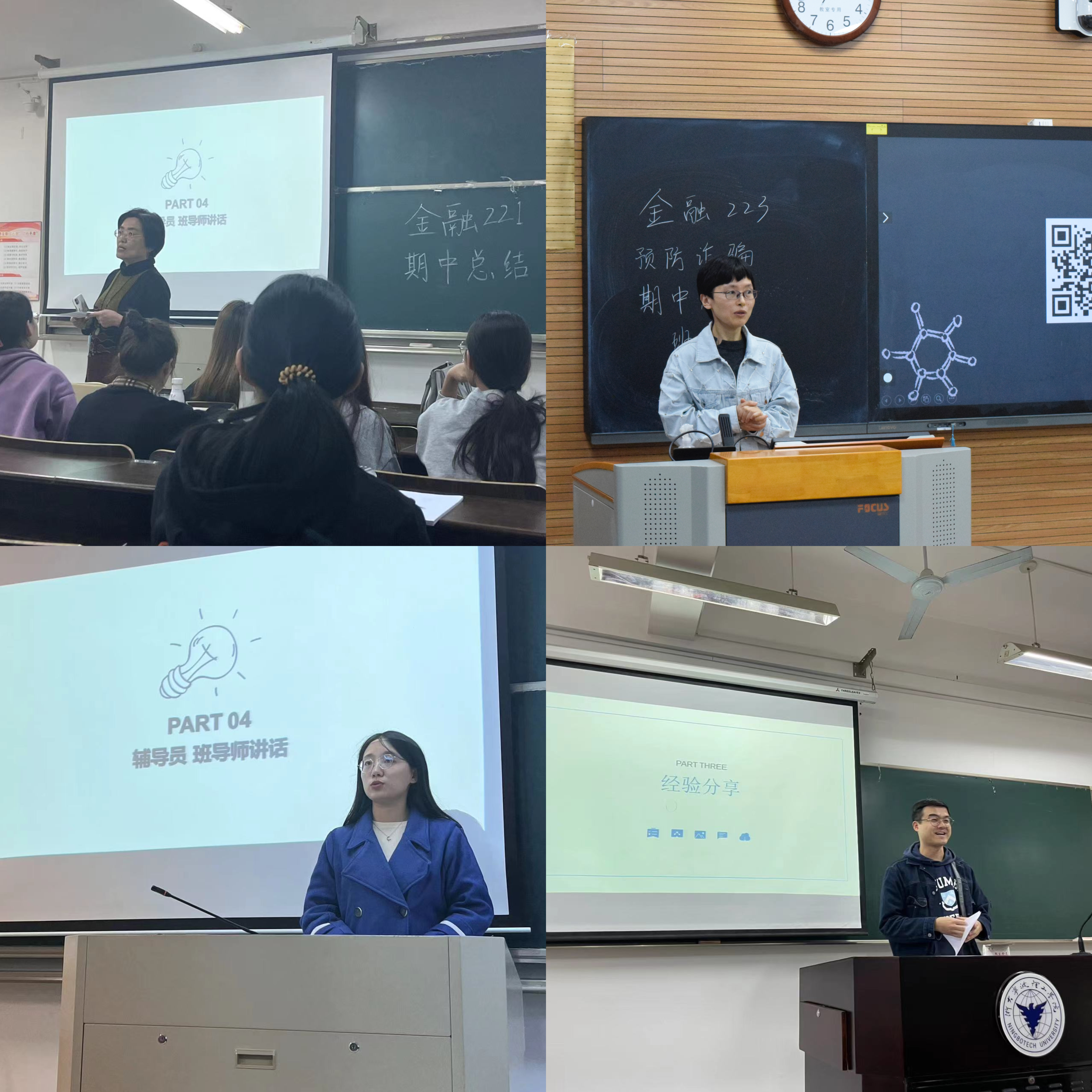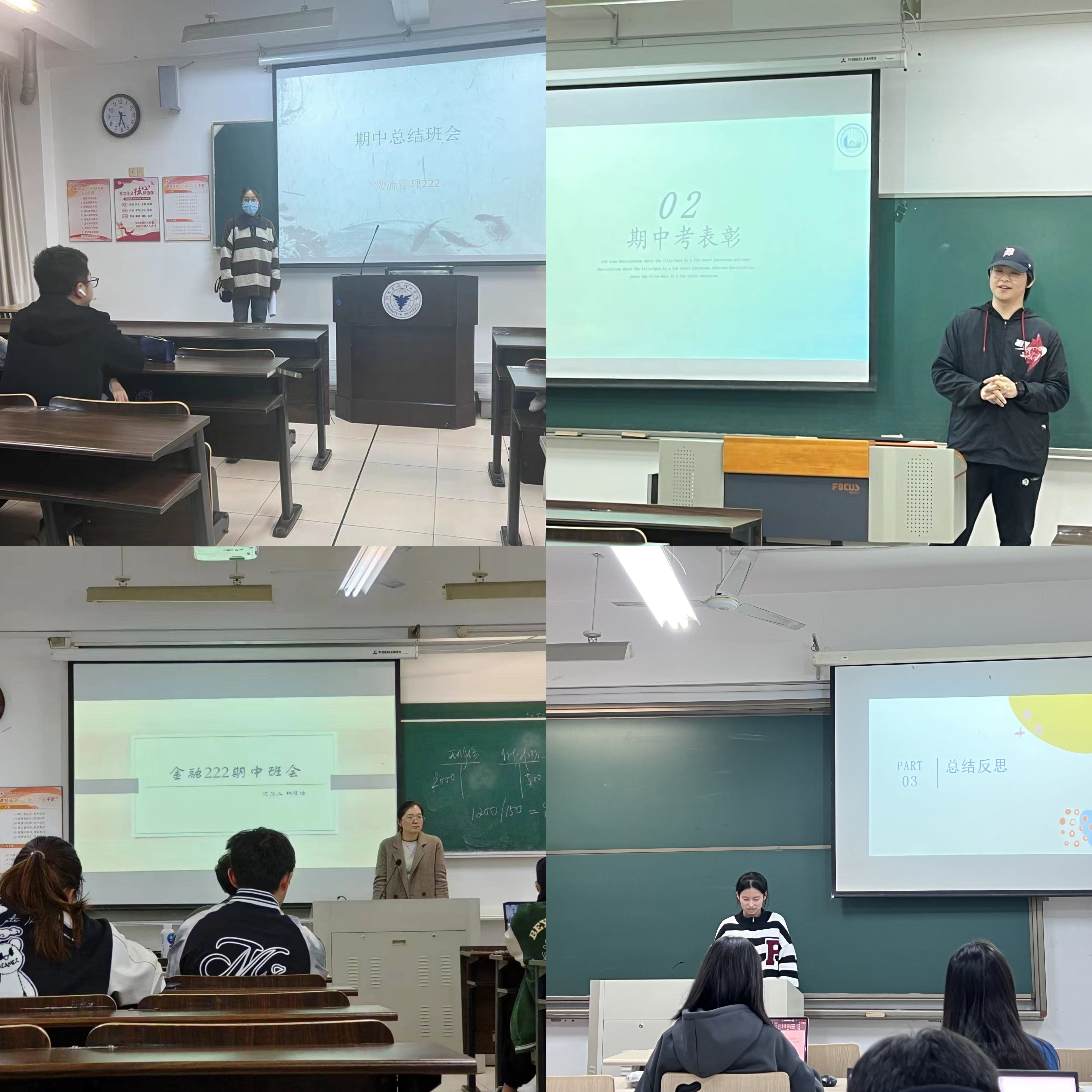 各班学习委员首先对班级的期中成绩进行分析,对科班级的平均分、高分段人数与同专业的班级进行比较,并针对每门课程的学习方法提出了相关建议。