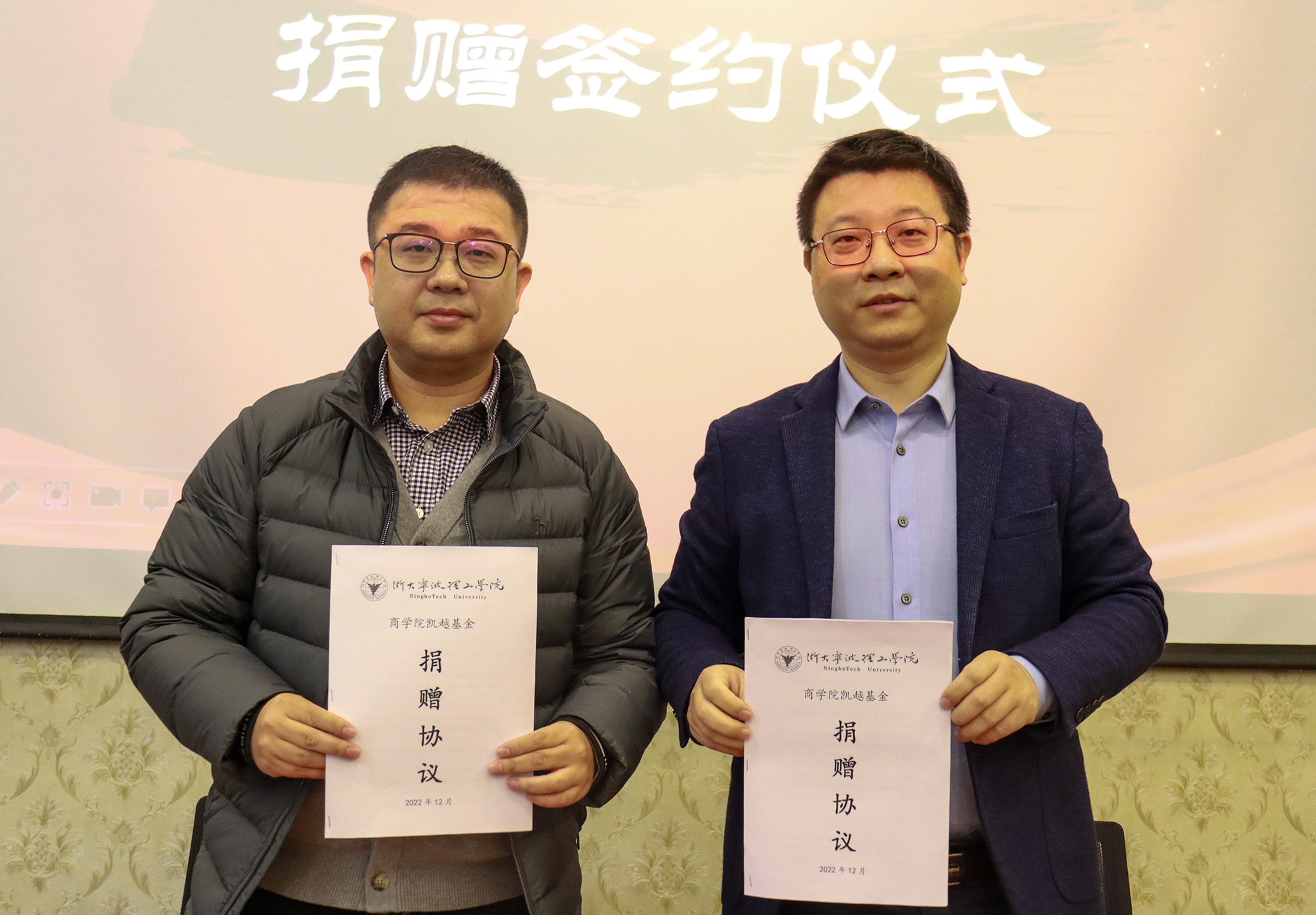 随后梅廷、李俊、马翔、傅晓宇签订了“凯越”基金捐赠协议和实践基地协议;鲁东明和张硕分别向朱吉颁发捐赠证书和实践基地授牌;任凯和吴琼分别为朱吉、梅廷、李俊颁发企业家导师和员工导师聘任证书。