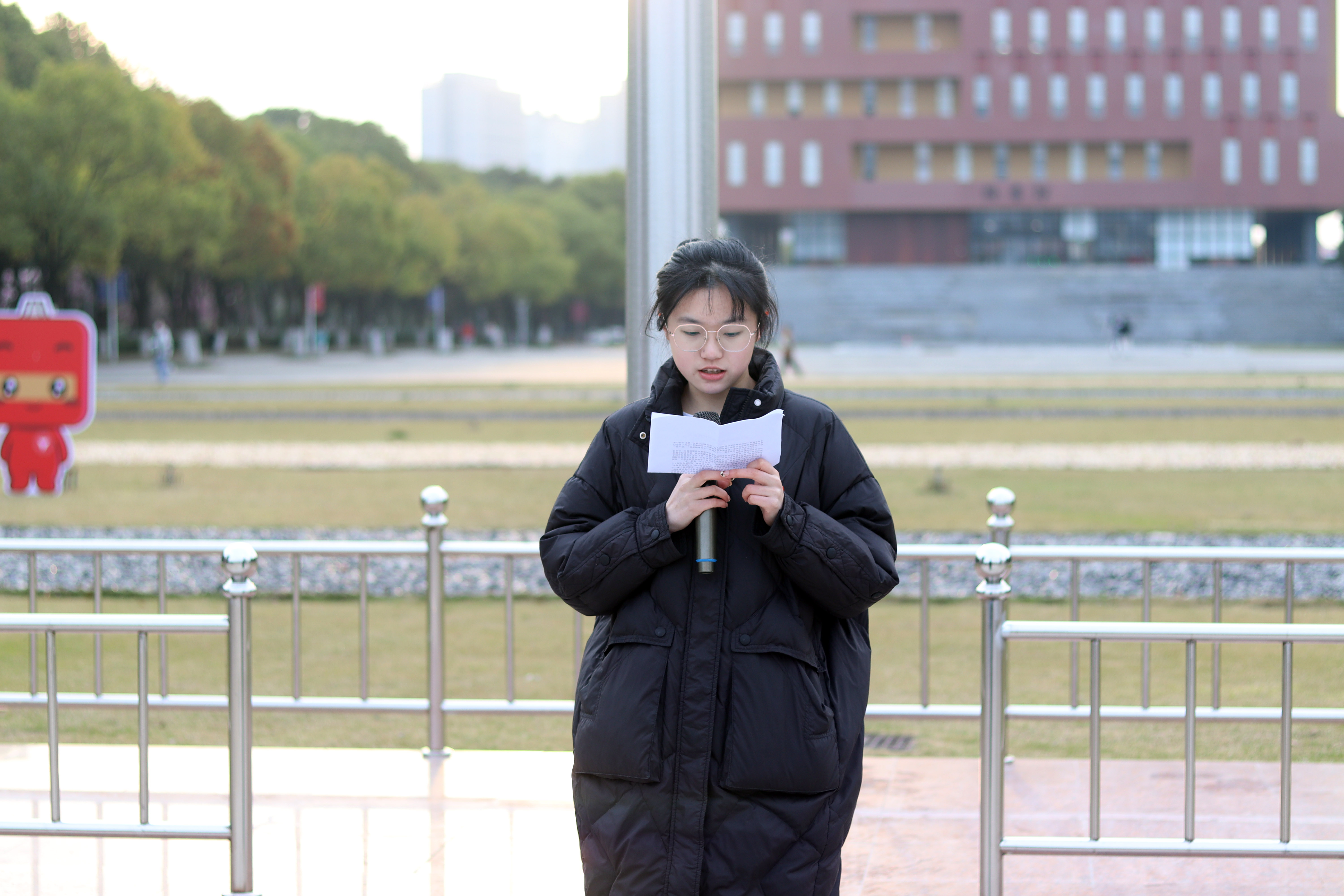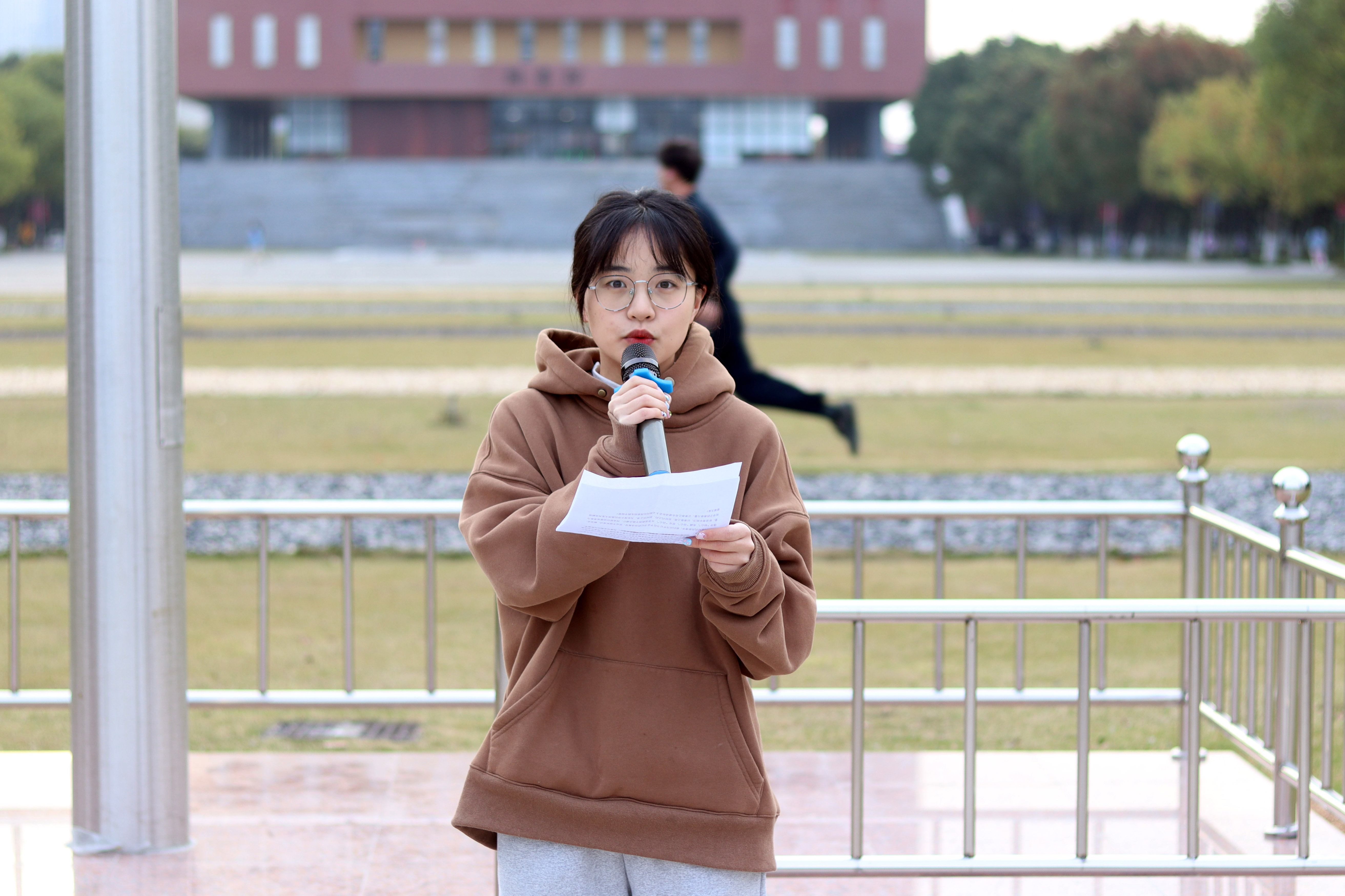 电商221班毛薇作为新生代表进行发言。她呼吁作为新时代的青年,要脚踏实地、积极进取,要增强社会责任感,要担当时代民族复兴大任,以时不待我、只争朝夕的态度和精神投入学习中去。