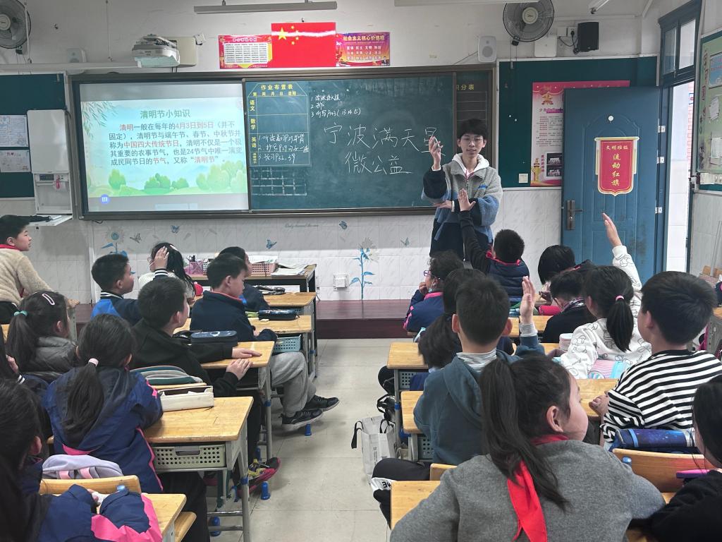 2023年3月31日,yl23411永利官网登录满天星微公益活动的志愿者们来到宋诏桥小学,给四年级的小朋友们开展了一堂以“清明融于情,红色润于心”为主题的班会课,此次活动主要是为了让小朋友们了解我国清明节的相关知识。