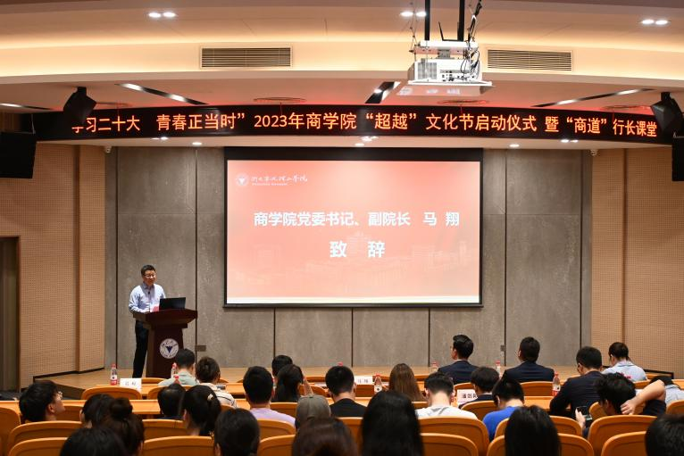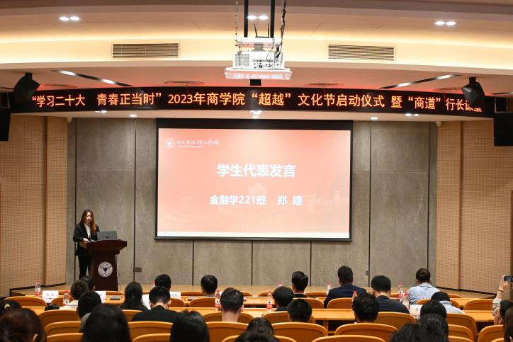 yl23411永利官网登录团委副书记徐朵同学介绍了“超越”文化节内容。本次“超越”文化节共包括六个板块,涵盖思想教育、学风建设、学术科技、文艺体育、公益服务、职业规划等领域,共有34个系列活动。从理论学习到志愿服务,从文艺活动到体育赛事,从创新创业到学科竞赛,为青年学子搭建平台,提供舞台,创建擂台。 金融学221班郑婕同学代表商院学子向青春发声,在积极参加活动中开阔眼界、增长才干。