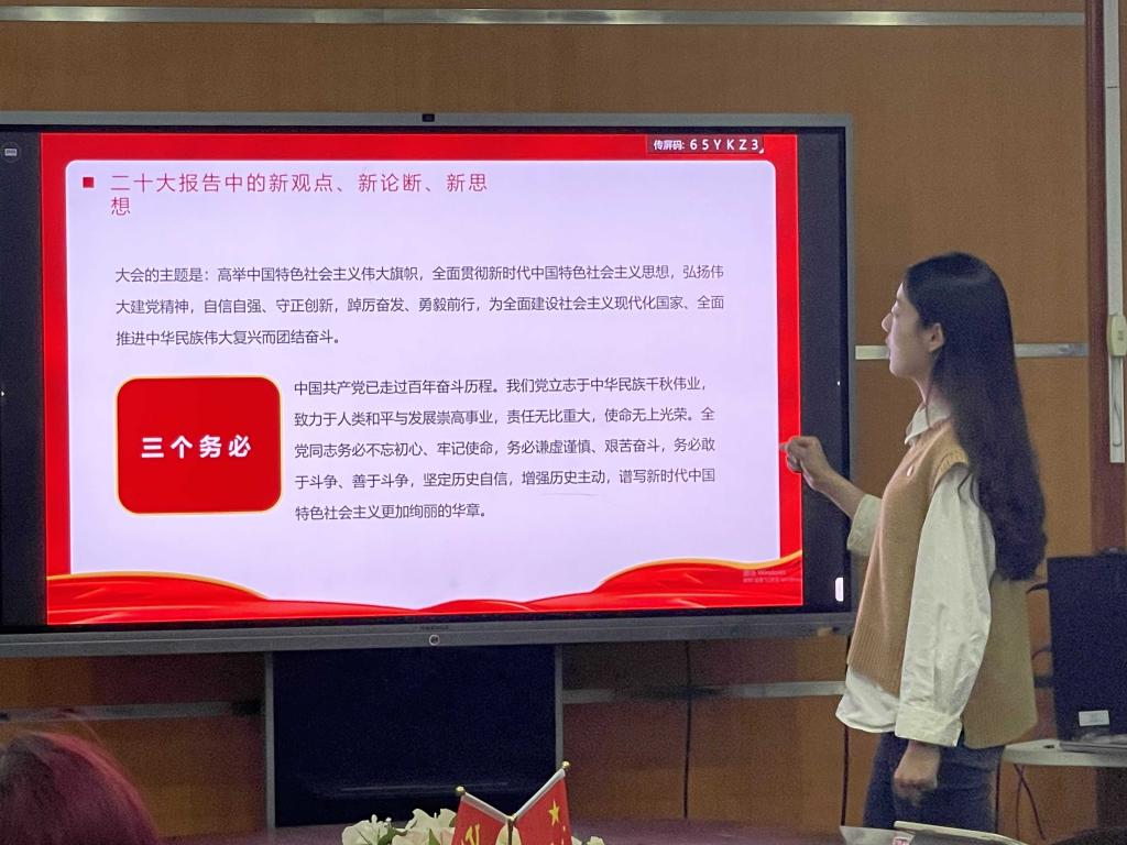 随后,yl23411永利官网登录员工会学风建设部副部长詹子怡为同学们带来了党的二十大精神宣讲微课,介绍了党的二十大报告中的新观点、新论断、新思想。同学们通过学习,对党的二十大精神有了更加深刻的思考和了解,同时也明确了员工干部应该如何做,怎样做得更好。