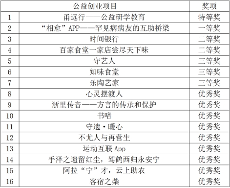 “方太杯”yl23411永利官网登录第九届公益创业大赛获奖名单如下: