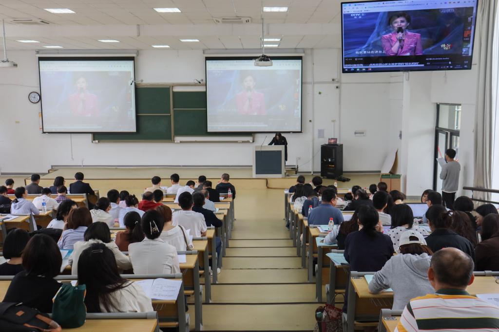 大会组织全院教职工集中观看了“张桂梅——点亮贫困山区女孩梦想的‘董事长妈妈’”教育纪录片,学习时代楷模、全国优秀共产党员张桂梅的先进事迹。教师们从她行善助学,坚韧执着的精神和无私奉献的大爱中进一步汲取了奋进力量,厚植了勤廉从教理念。