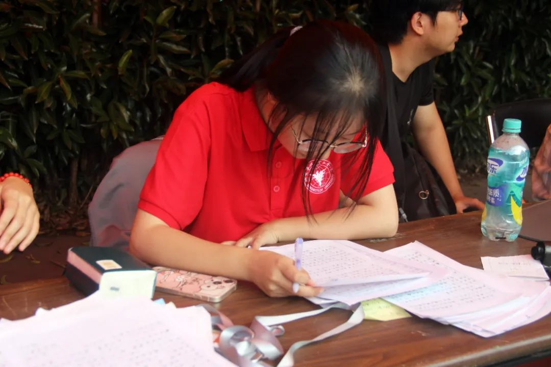 看台上,满是一片“商院红”。伴随着声声鼓音,“青春商院,超越极限”喊出独属于商院热烈而又浪漫的青春号角。低头写着的加油稿,充满着对运动员们的祝福;抬头中眼里的光芒,满怀着对运动员们的期待。