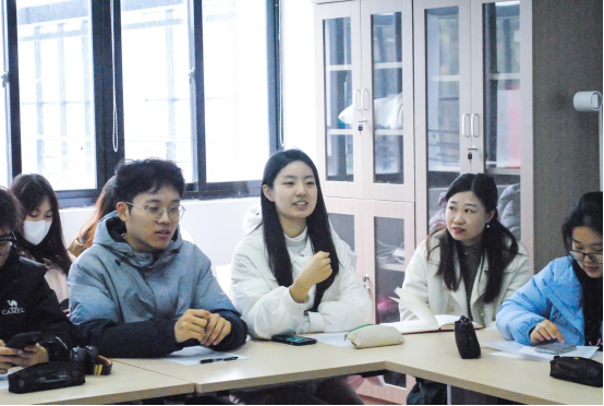 座谈会上,中美班员工代表们分享了关于中美班人才培养的感想和专业学习过程中碰到的困难,吴琼老师、李雪艳老师以专业的角度进行了回应和解答,部分员工代表也积极地解释和补充。此外,大三员工代表詹子怡认为开启线下教学让她收获满满,并表示外教生动丰富的教学方式为同学们提升口语、写作能力提供了极大的帮助。