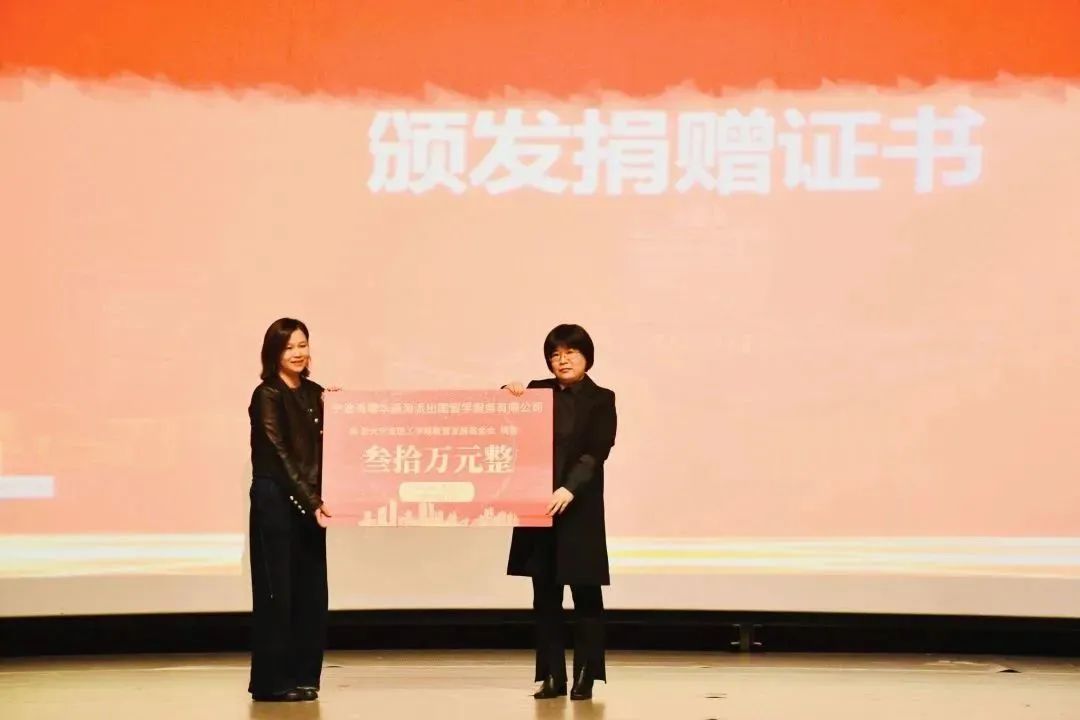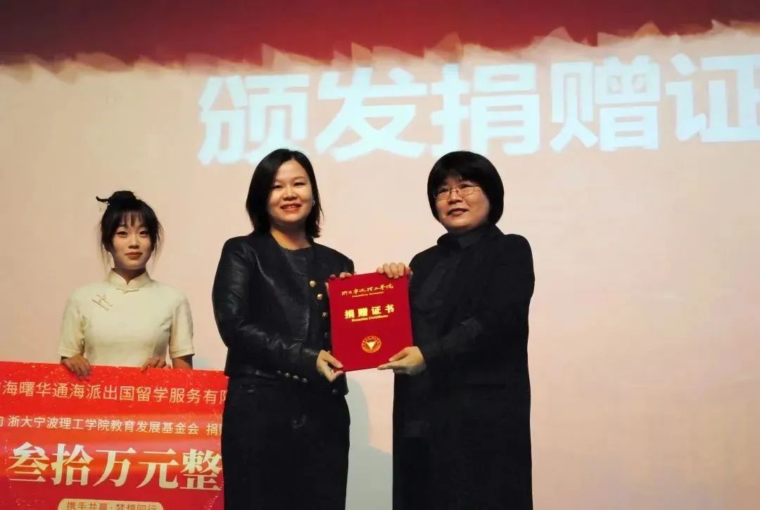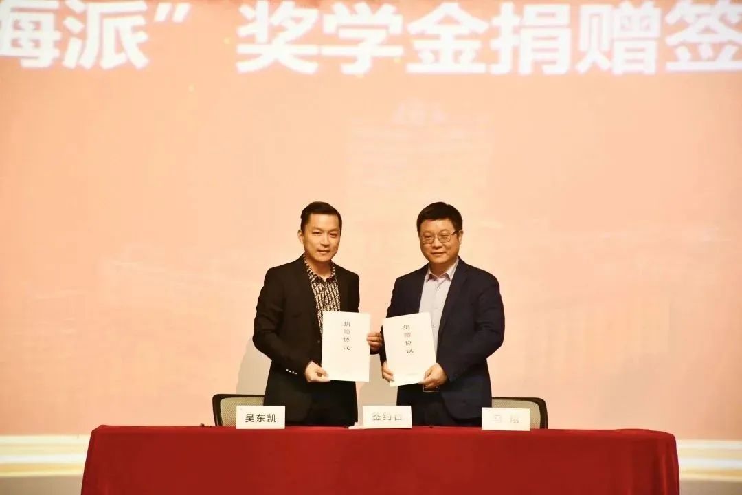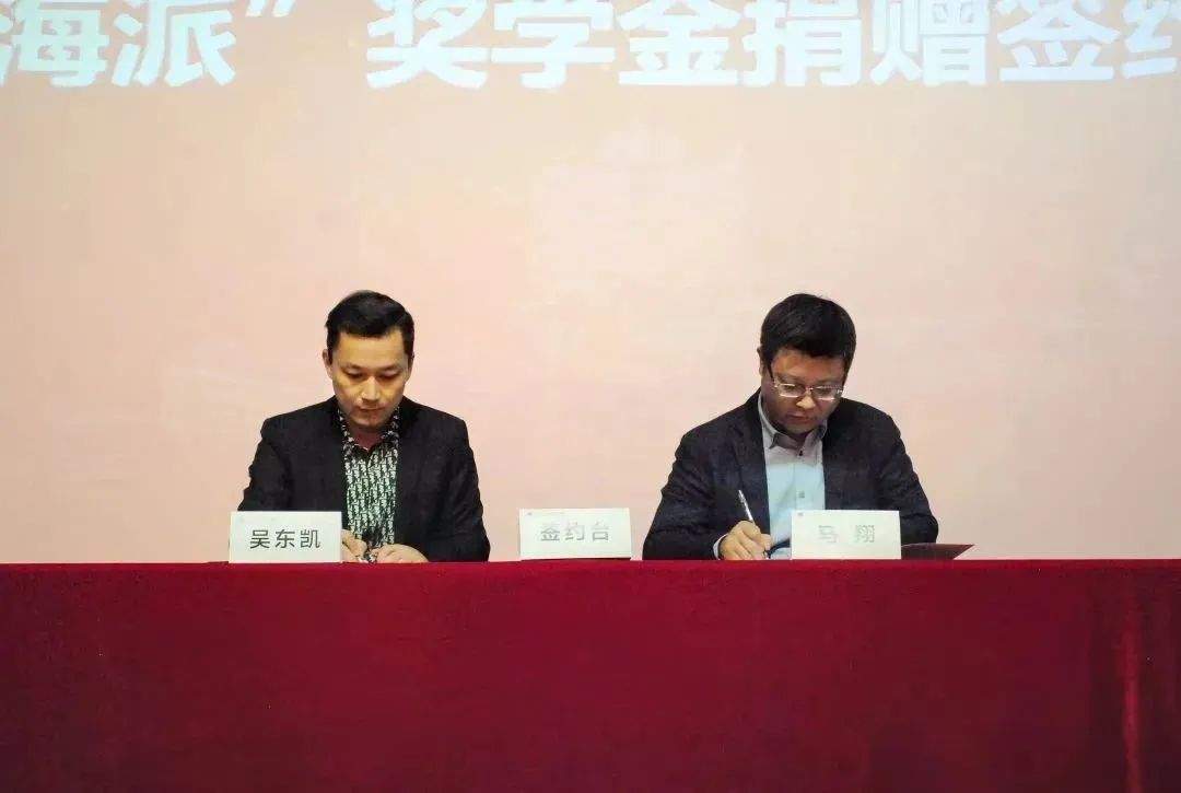 随后进行的是签约环节。公司党委书记、副经理马翔与华通海派教育总经理吴东凯签订“华通海派”奖学金捐赠协议。公司招就处副处长、教育发展基金会秘书长张硕为华通海派教育颁发捐赠证书。