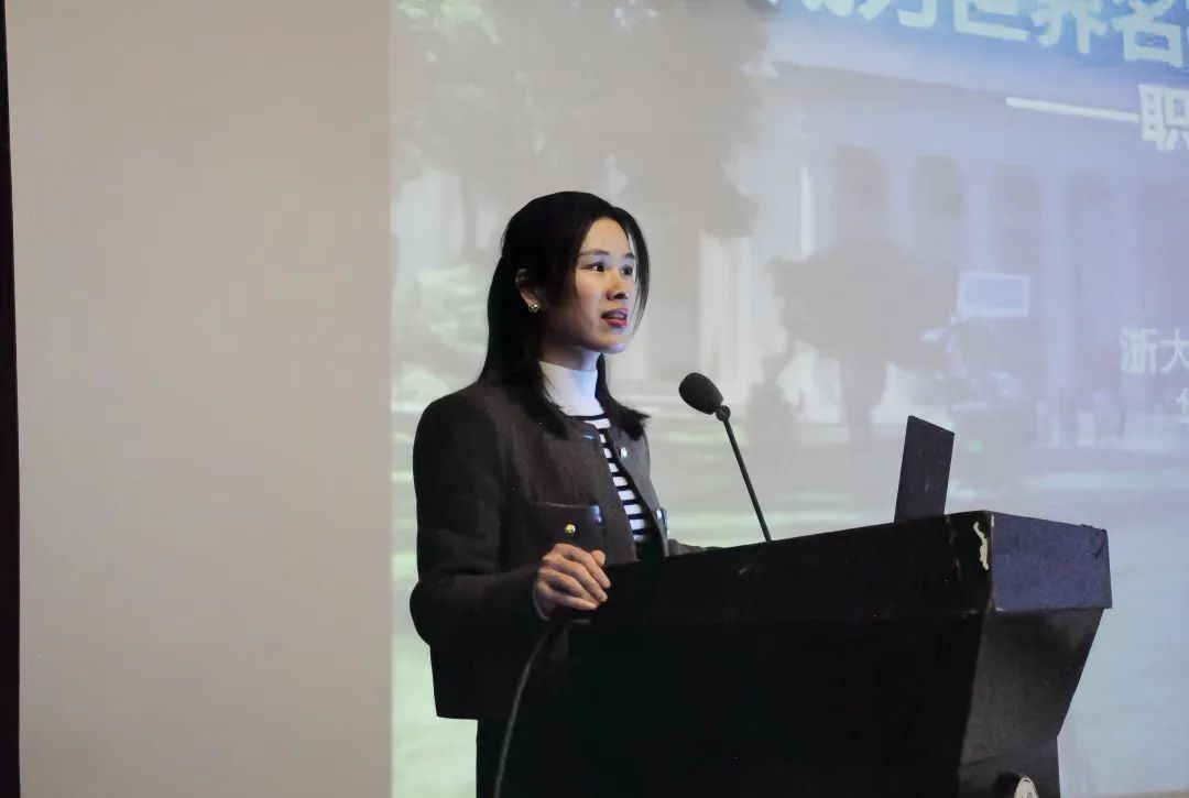 随后,华通海派留学总监泮福燕老师为同学们带来“成为世界名校青睐的优秀学子”专题讲座。泮老师首先回顾了商院往届学子升学方向和留学数据,表示商院学子一定要明确自身时间规划,结合成绩目标选择留公司校与专业;在准备出国标化考试的同时,也不能落下实习和课外活动,前瞻规划学术全能力成长。