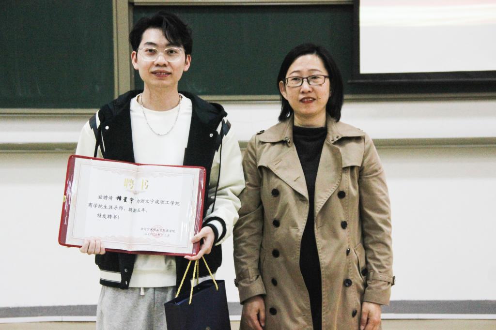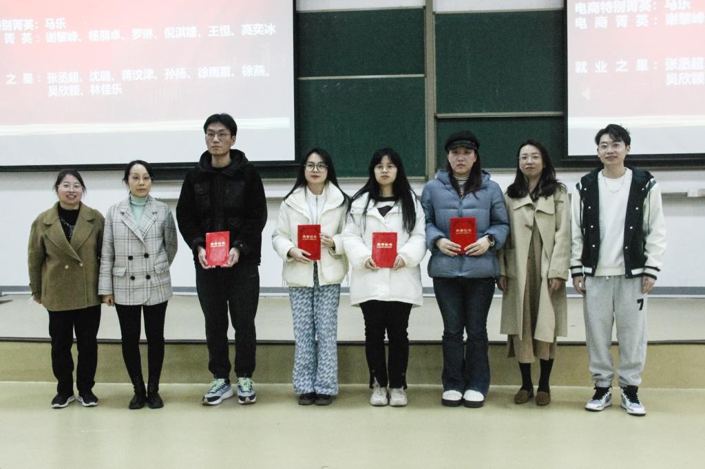 随后,电子商务专业教师和员工穆星宇共同为“电商菁英”奖学金获奖者颁奖了荣誉证书。