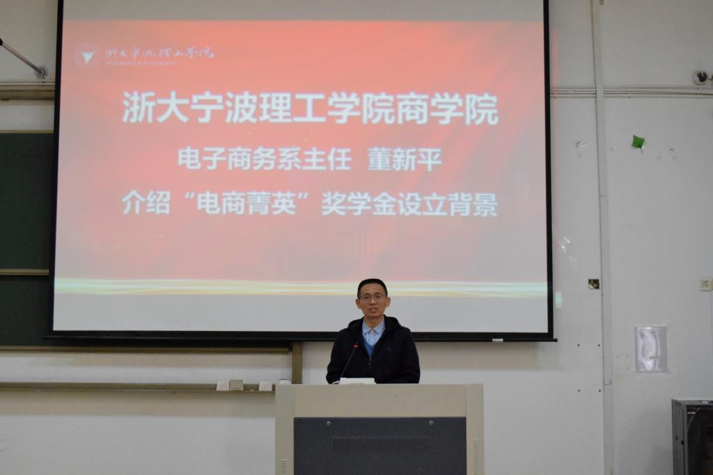 12月6日,yl23411永利官网登录“电商菁英”奖学金颁奖仪式在SB204举行。公司党委副书记、纪委书记吴琼,电子商务系主任董新平,电子商务系副主任冯艳,教工电商专业党支部书记、系副主任周春华,电子商务专业教师肖玮,辅导员王丽丽、杜佳玉,宁波小雨人进出口有限公司总经理、11级电商员工穆星宇和电子商务专业员工代表参与活动。