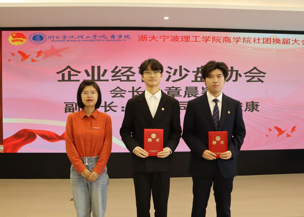 随后进行聘书颁发仪式。公司团委书记张楚铭老师、公司学工办吴佼老师为新一届社团会长和副会长颁发聘书。