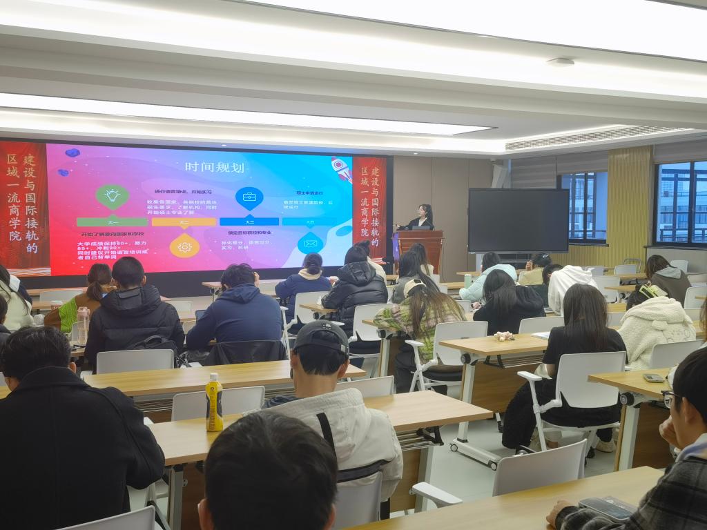为了帮助在校员工更好地了解留学的相关信息,提高留学申请的成功率,公司于2023年12月12日在SC412举办了一场“商道”员工论坛,为在校生提供出国留学经验规划交流。