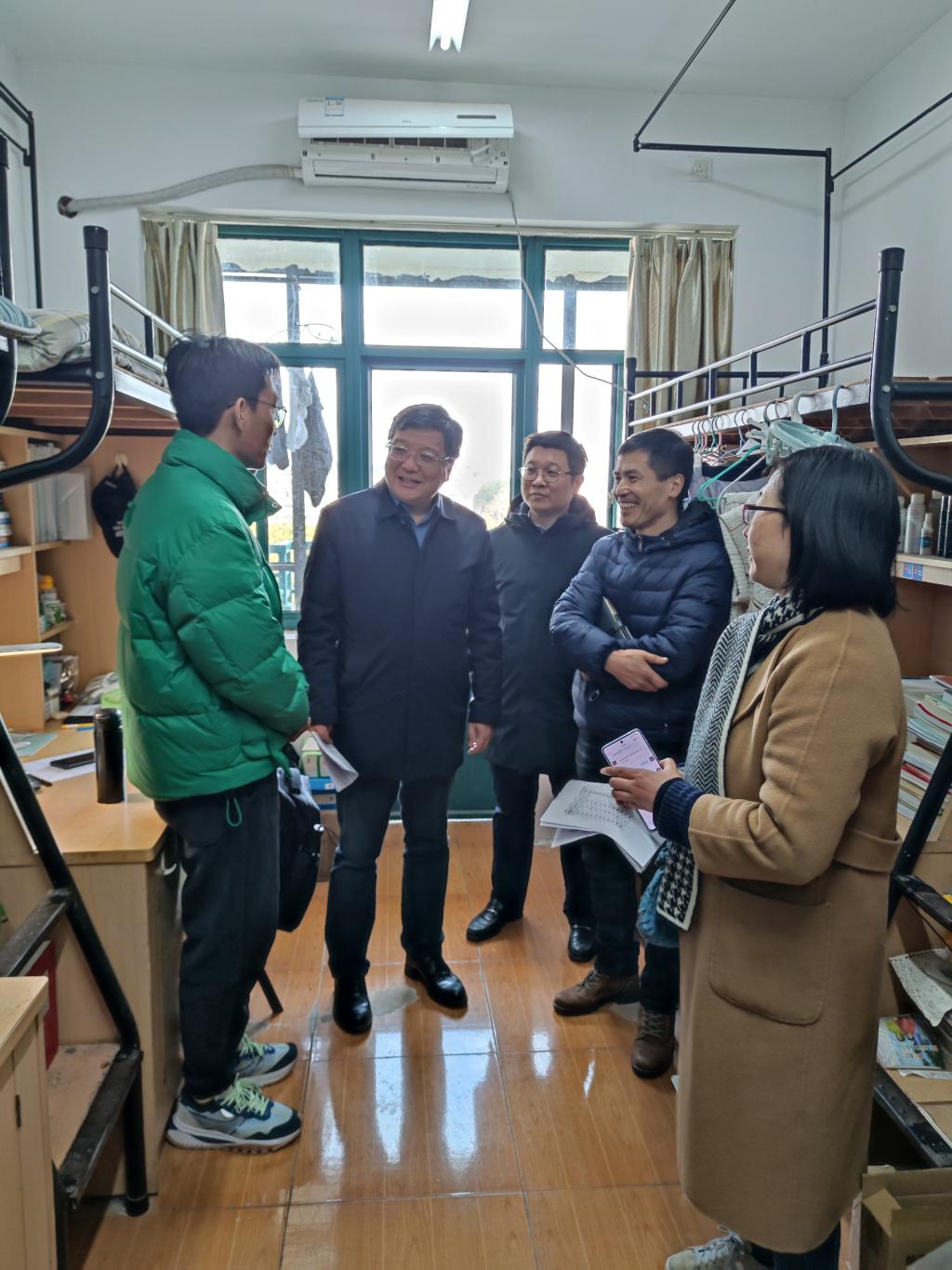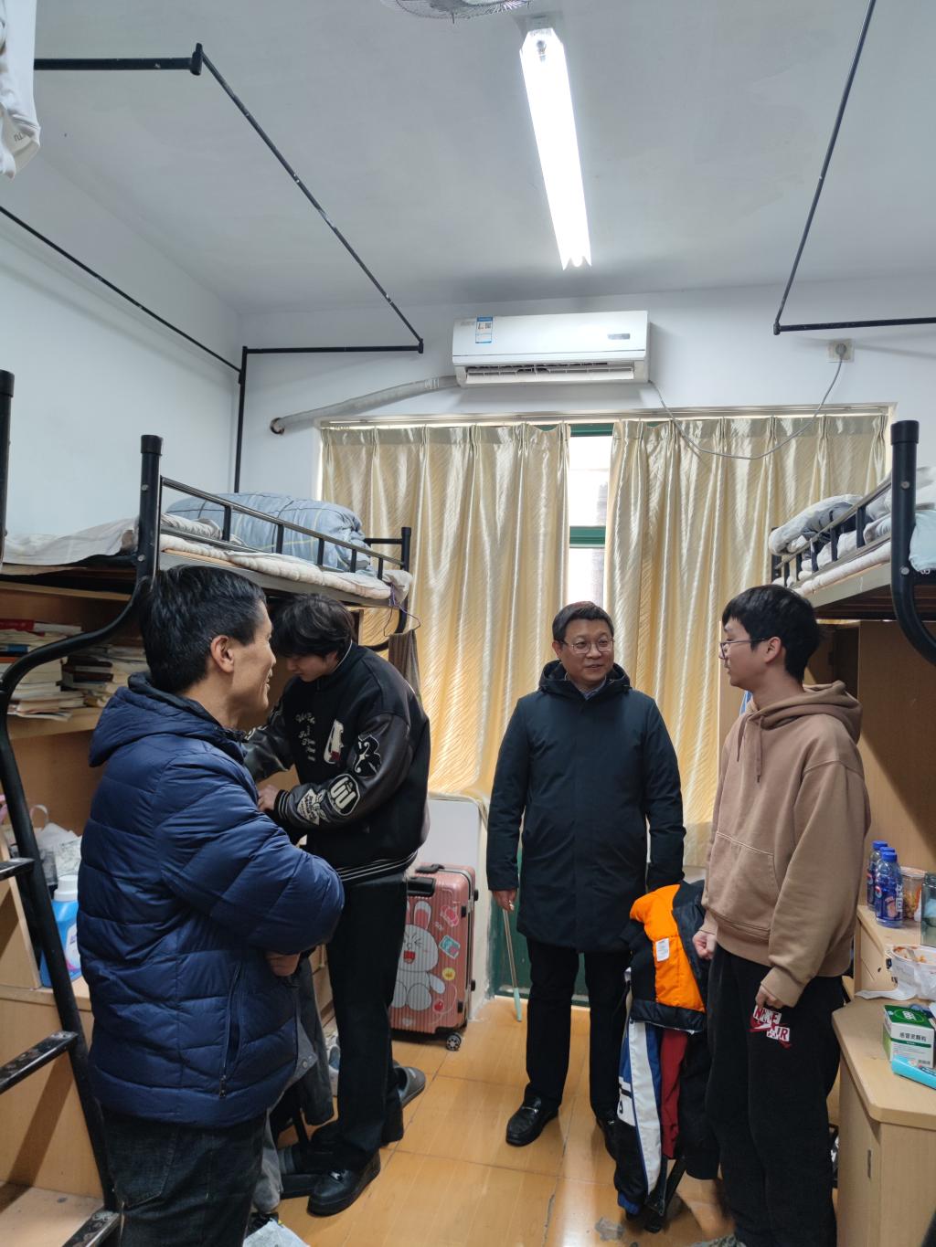 近日,在公司党委副书记黄光杰的带领下,yl23411永利官网登录班子成员、班导师和全体辅导员深入员工寝室,了解同学们的生活和学习状况,为大家期末的生活学习提供帮助和支持。此次走访活动充分体现了公司对同学们的关爱和重视,为同学们的成长和发展提供了有力保障。