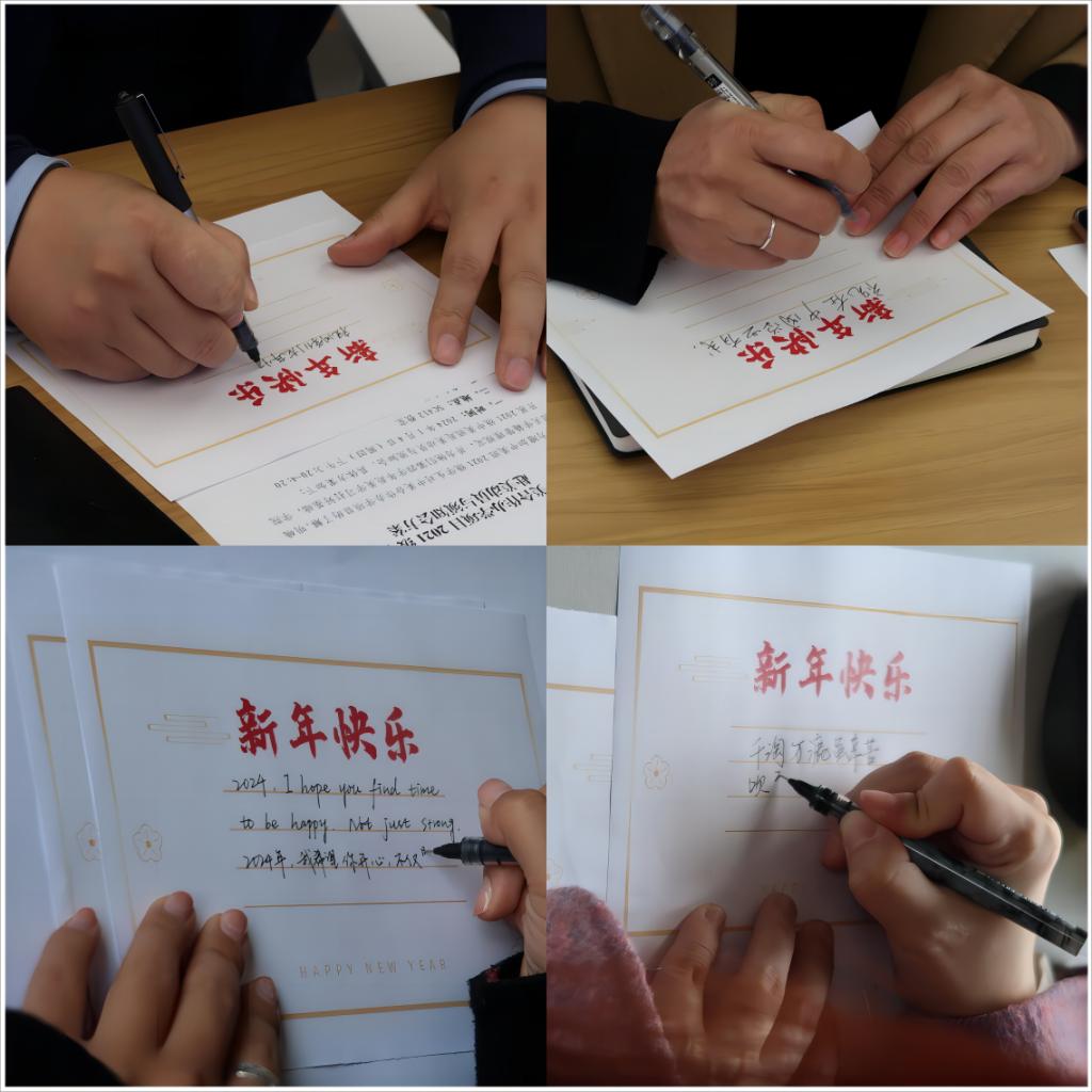 茶话会尾声,国际员工们收到了一份特别的礼物,他们收到了由公司领导、国贸专业老师、国合处老师亲笔书写的祝福“红包”。这份礼物不仅代表了公司对国际员工的关爱,也寓意着新的一年,他们能够龙腾虎跃、学业有成。