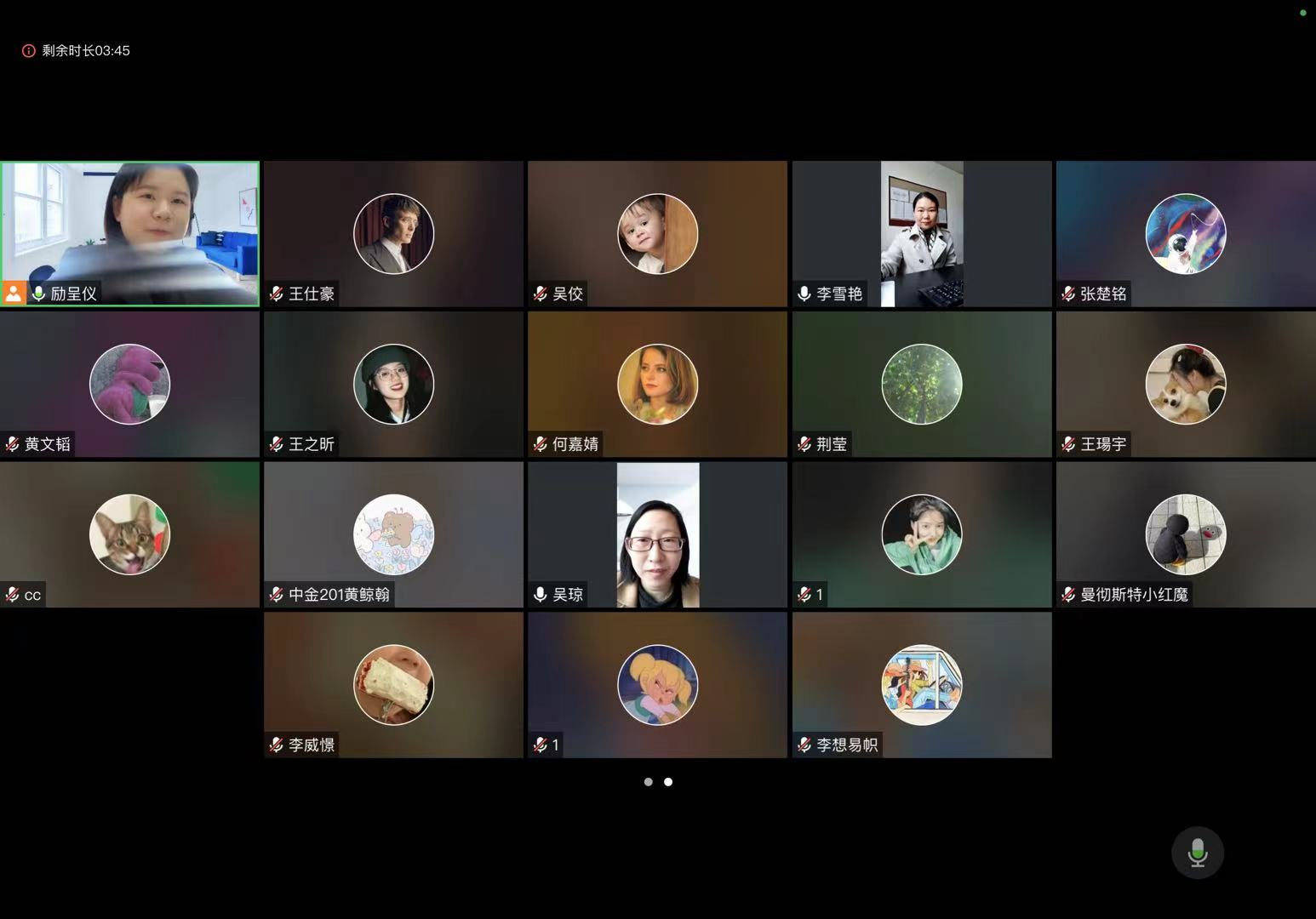 首先,各班员工代表汇报了近期在美学习课程情况以及毕业后计划安排。随后,辅导员张楚铭和吴佼老师向大家通报了公司关于大四员工就业毕业相关安排和目前所掌握的就业情况。在交流环节,吴琼老师和李雪艳老师对同学们的问题一一做出了解答,并和他们就美方课程安排、毕业后发展等情况进行了探讨和分享。中美班即将迎来20周年,吴老师邀请各位同学返校参加于6月初举行的中美班毕业典礼以及中美班20周年相关活动;在就业升学方面,也建议大家可以及时关注毕业生群,掌握更多招聘实习信息;提醒大家要把安全和身体健康放在第一位,及时认真学习分享在群里的防诈实例,做好个人安全和财物安全管理。李老师提醒同学们在国外也要及时关注国内行业形势,期望大家学习就业顺利。