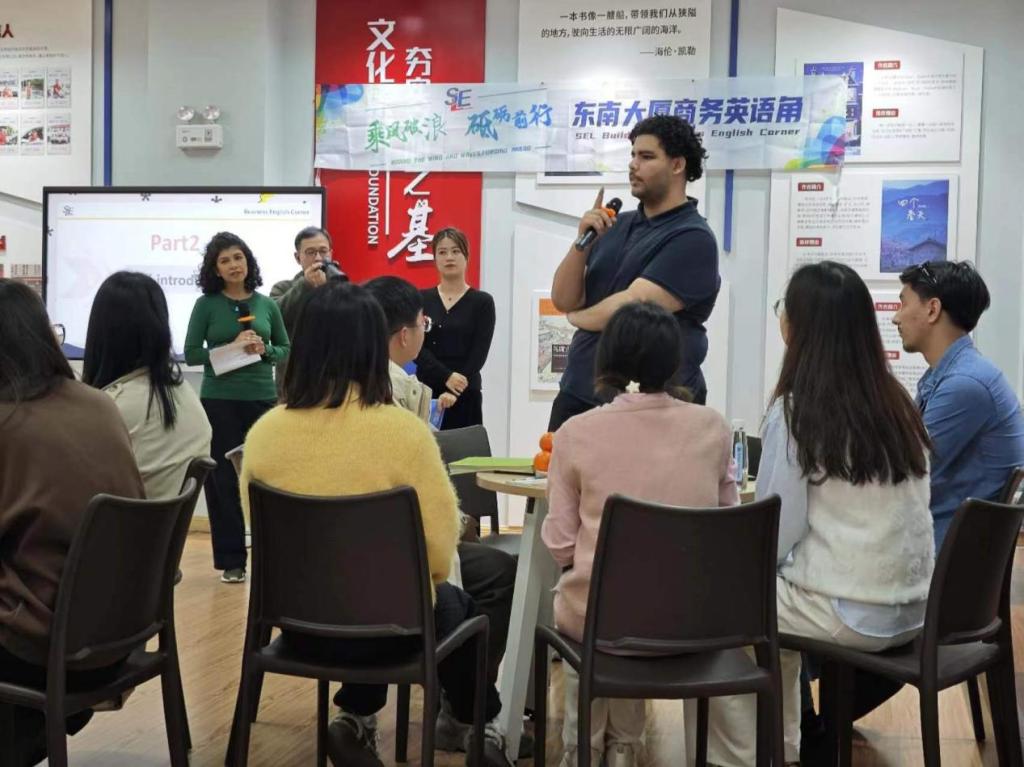 此次活动是东南物流集团策划的商务英语角活动第一期,之后的活动国际生将持续参与其中。未来,公司将继续深化与东南物流集团的交流与合作,为国际生提供参与集团开发项目,零距离体会宁波优秀企业的工作内容和风格,深度感受在甬企业奋勇争先、勇立潮头的企业精神的机会和平台。