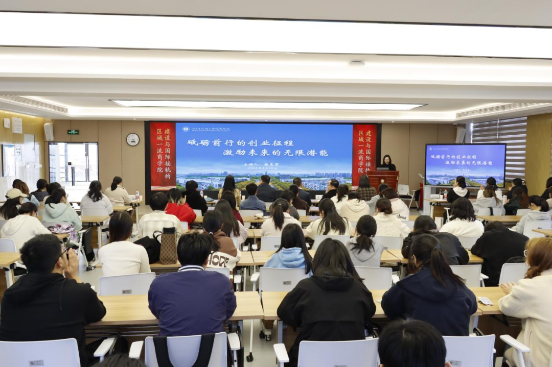 为拓宽员工专业视野,了解产业创新发展趋势,提高员工创新创业能力,3月19日下午,yl23411永利官网登录开展了首届“商道•企业家论坛”。此次讲座特邀浙江恒河实业集团有限公司董事长杨孟君,以“砥砺前行的创业征程,激励未来的无限潜能”为主题,为公司师生进行分享。公司党委副书记黄光杰、yl23411永利官网登录经理苗青、yl23411永利官网登录副经理李雪艳等出席活动。活动由公司党委副书记、纪委书记吴琼主持。