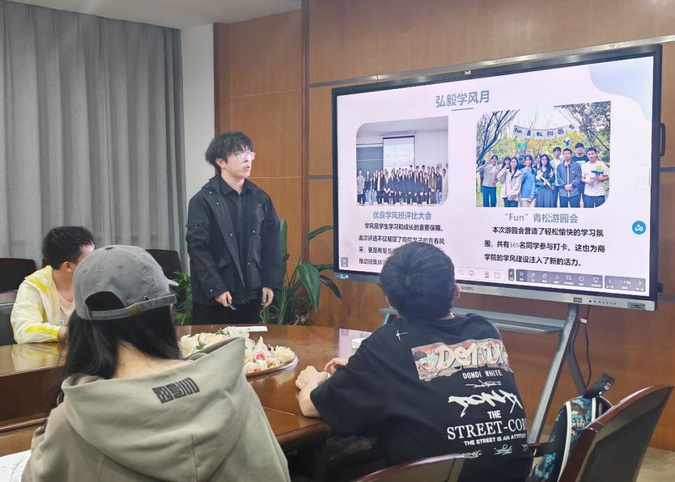 会议的第四项议程由各部门部长进行工作回顾与交流。学风建设部副部长毛一达回顾了优良学风班评比和学风建设活动的开展情况。员工权益部部长陈恬甜介绍了在维护员工权益方面的系列活动,如校园劳动服务集市和考研分享会等。成长互助部部长陈蒙雨则强调了学习党的会议精神和探讨员工会组织建设的重要性。