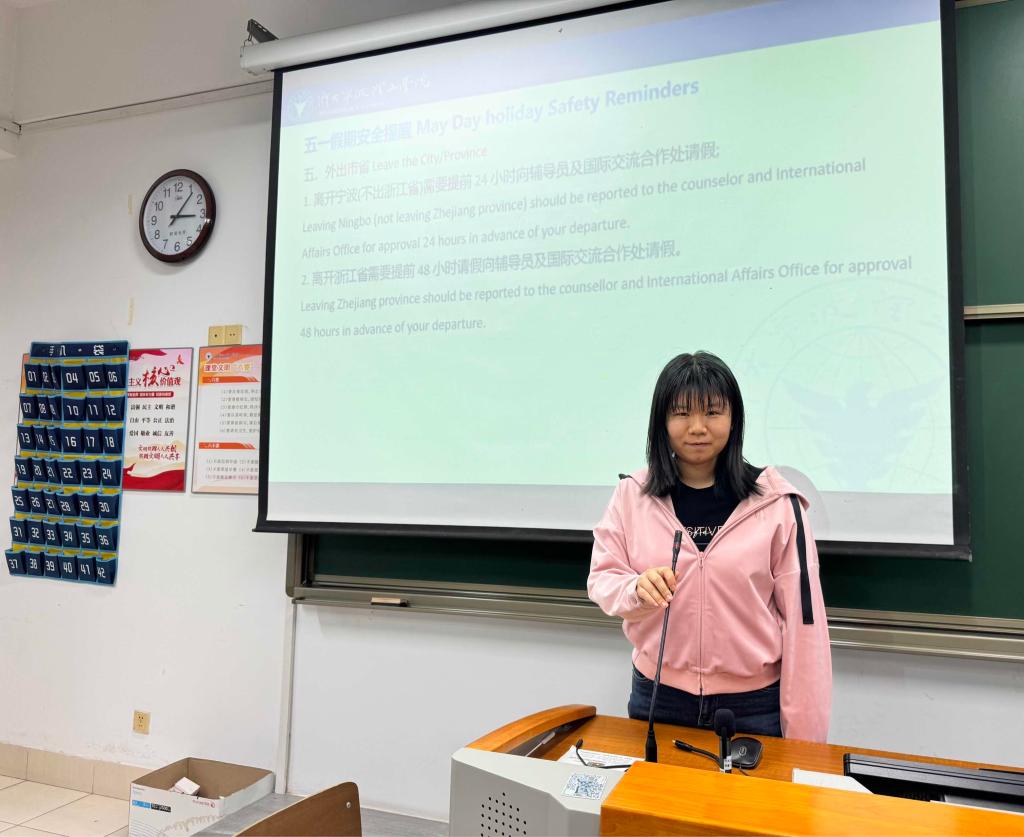 为提高国际员工的防范意识和安全意识,4月30日下午,yl23411永利官网登录为国际员工举办了一场反诈骗知识教育兼五一假期安全教育班会,班会由yl23411永利官网登录国际生管理夏露和班导师励呈仪主讲。