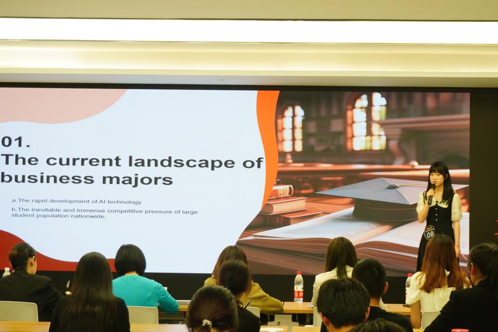 比赛期间,参赛选手们分别以《新型就业市场》和《洞悉职场、职面未来》为选题,从人工智能、市场需求、产业转型等角度出发,熟练地用英语阐述了自己对于当前全球经济形势下就业市场走向和对未来职场新变化的理解。选手们口齿清晰、表达流畅、举止从容、情绪饱满、紧扣演讲主题,内容充实鲜明,层层推进,给予在场观众良好的视听盛宴。