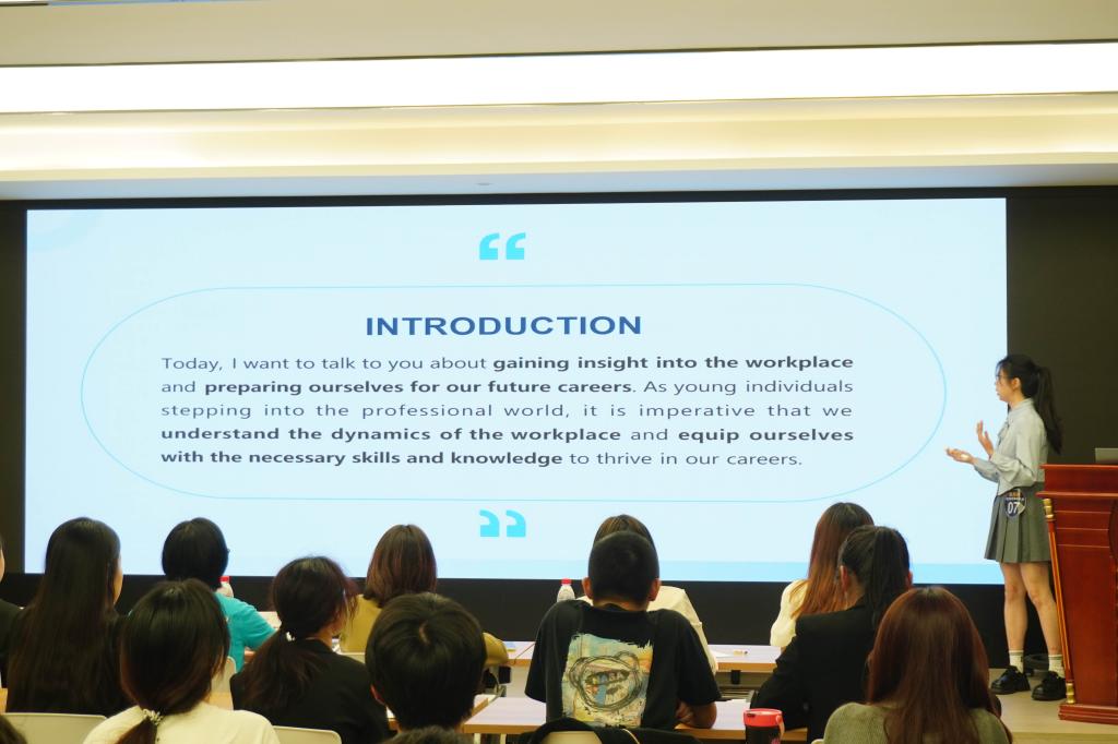 语言是思维的工具,而英语口语作为语言表达的媒介,对职业发展起到了至关重要的作用。为丰富员工的校园生活,提升员工英语口语能力,形成浓厚的英语学习氛围,2024年5月22日yl23411永利官网登录“慧商”木兰工坊联合华通海派,在中美合作办学项目二十周年之际,开展了“海派杯”英语演讲比赛。公司党委副书记、纪委书记吴琼老师、公司国际生管理夏露老师和华通海派Helen、Kyra、Aya、Mandy老师担任本次比赛的评委,华通海派邬昕洁老师担任主持。