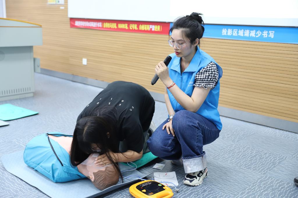 陈锶琦医生和阮一医生分别详细讲解了心肺复苏的概念、意义及操作流程,讲解了自动体外除颤器(AED)的操作方法,并现场示范了心肺复苏的过程,尤其强调了打开气道、找准心脏位置和按压的力度。理论授课后,员工们在徐亚男医生和陈淑芹医生的指导下,运用人体模型开展心肺复苏实体操作,进一步加深对急救知识技能要领的掌握。通过专业教培,大家切实掌握了这项简单而有效的急救技能,有力抓住生命抢救“黄金四分钟”。