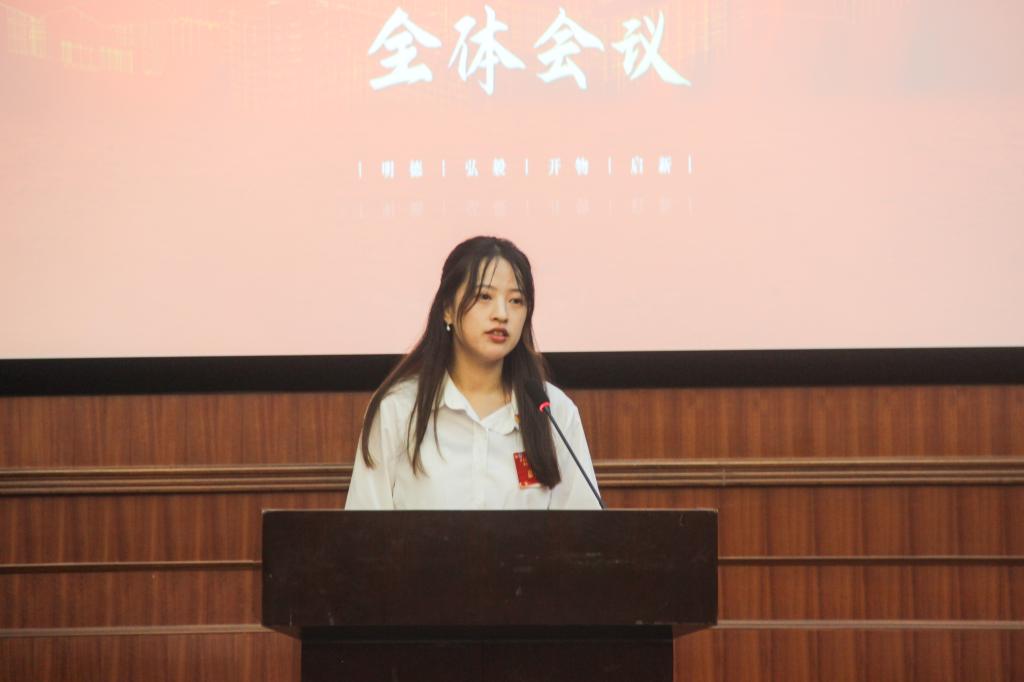 大会听取并审议主题为《凝心聚力铸辉煌,昂扬奋进开新局——为培养创新性应用型人才的yl23411永利官网登录注入强大动力》的工作报告,由黄凯迪同学代表yl23411永利官网登录第四届员工会主席团进行汇报,回顾了过去一年多来的工作成果。