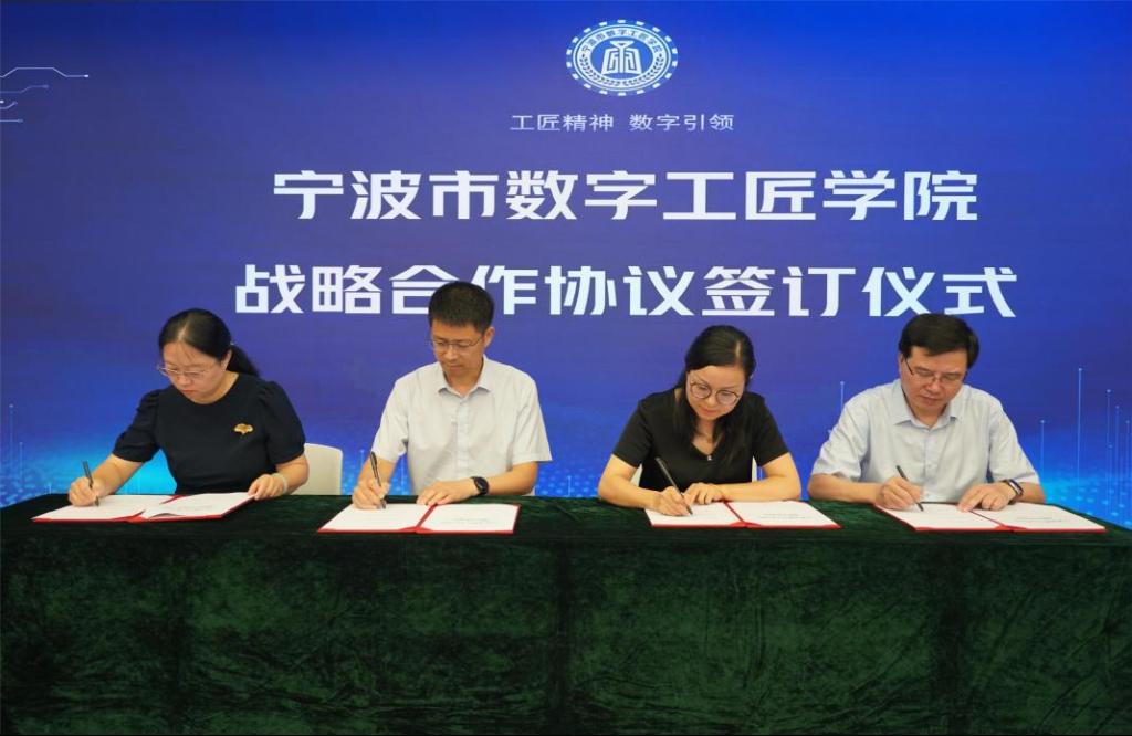 集团与宁波市数字信息产业工会、宁波市海曙区总工会、宁波第二技师公司共同签署“宁波数字工匠公司”战略合作协议。