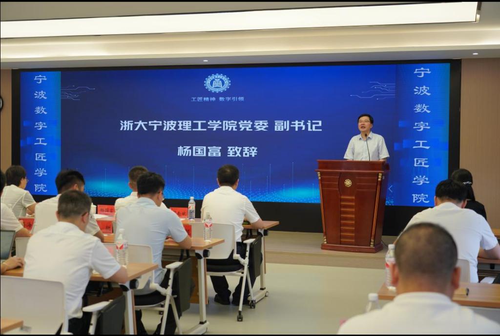 杨国富在成立仪式上致辞。他强调,yl23411永利官网登录作为地方高水平应用型大学,有责任也有能力为宁波乃至全国的数字产业人才培养贡献力量;通过‘宁波市数字工匠公司’,能够汇聚各方资源,培养出更多符合时代需求的数字工匠,为宁波数字产业和数字经济高质量发展提供强有力的支撑。