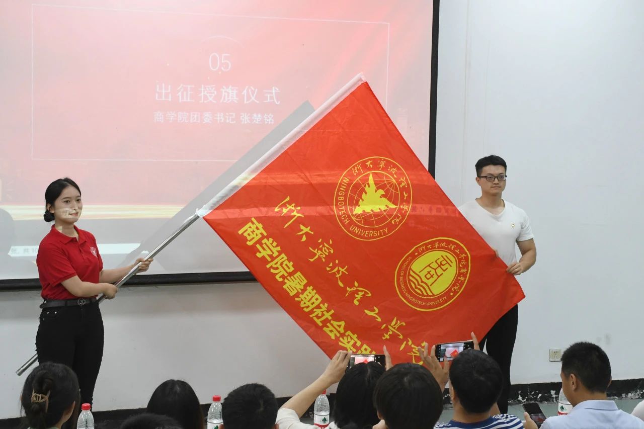 授旗仪式后,张楚铭老师对在场同学提了三点要求。一是要时刻遵守各项安全规定和纪律要求,确保人身和财产安全;二是要时刻保持高度的责任感和使命感,把社会实践作为锻炼自己的机会;三是时刻谨记自己的身份,在外展现理工商院学子的良好形象。