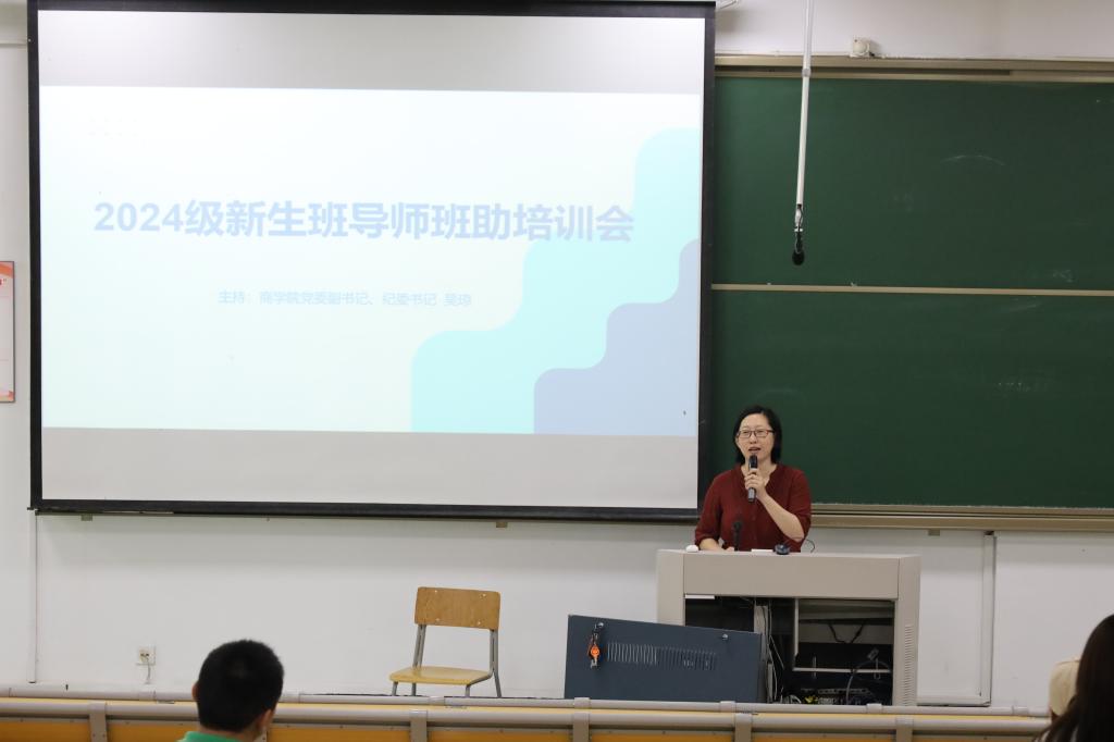 吴琼首先感谢各位老师和同学对员工工作的大力支持,对新生班导师和班助的工作进行了总体部署,强调班导师在新生工作中的重要性和责任,班导师和班助在新生入校适应期间发挥的教育、帮助、引导作用。她对新生班导师、班助在新生的学习、生活、心理等方面的工作提出相关具体要求。