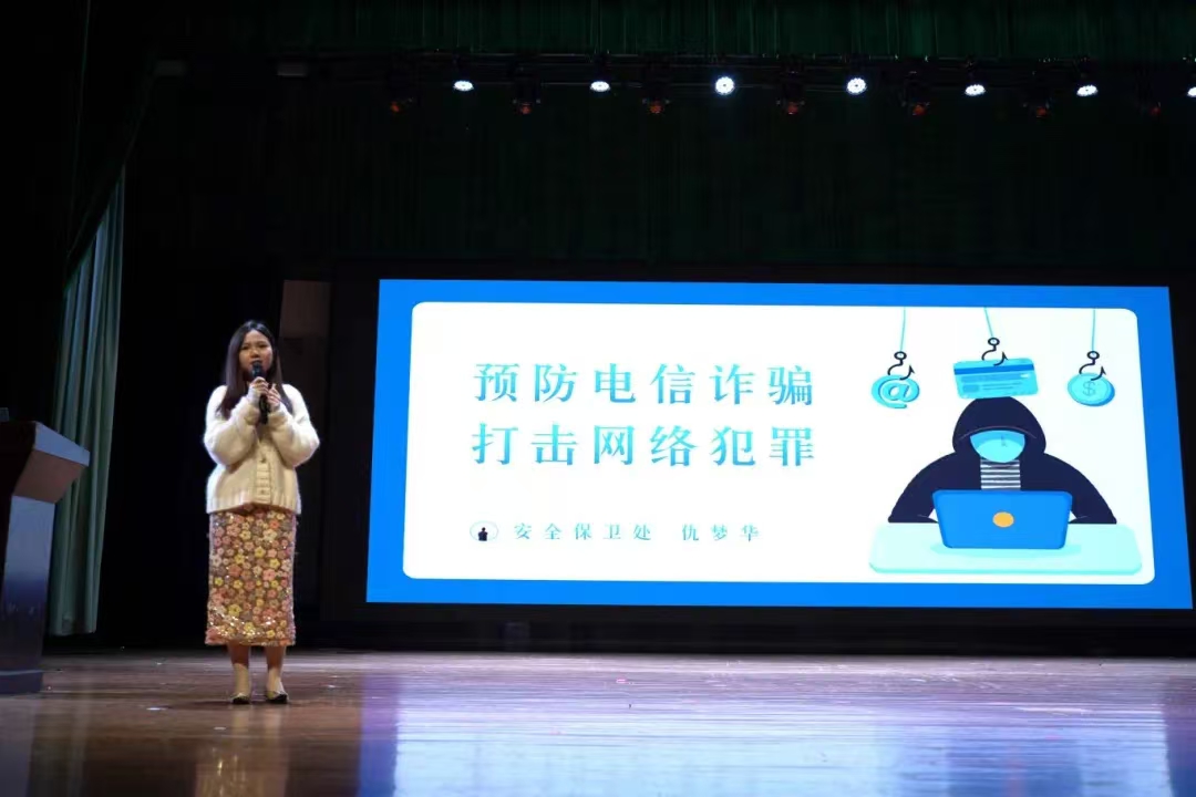 会议伊始,仇梦华老师就反诈主题指出诈骗的不同类型以提升同学们对诈骗的防范意识。她用身边真实事件进行举例与分析,希望同学们做到不去诈骗,不被诈骗。
