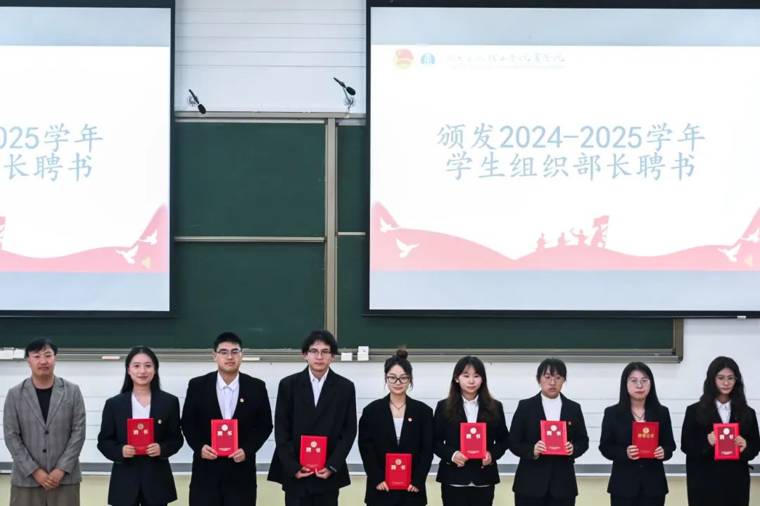 学工办老师们分别为新一届主席团主席以及各员工组织部长颁发聘书。