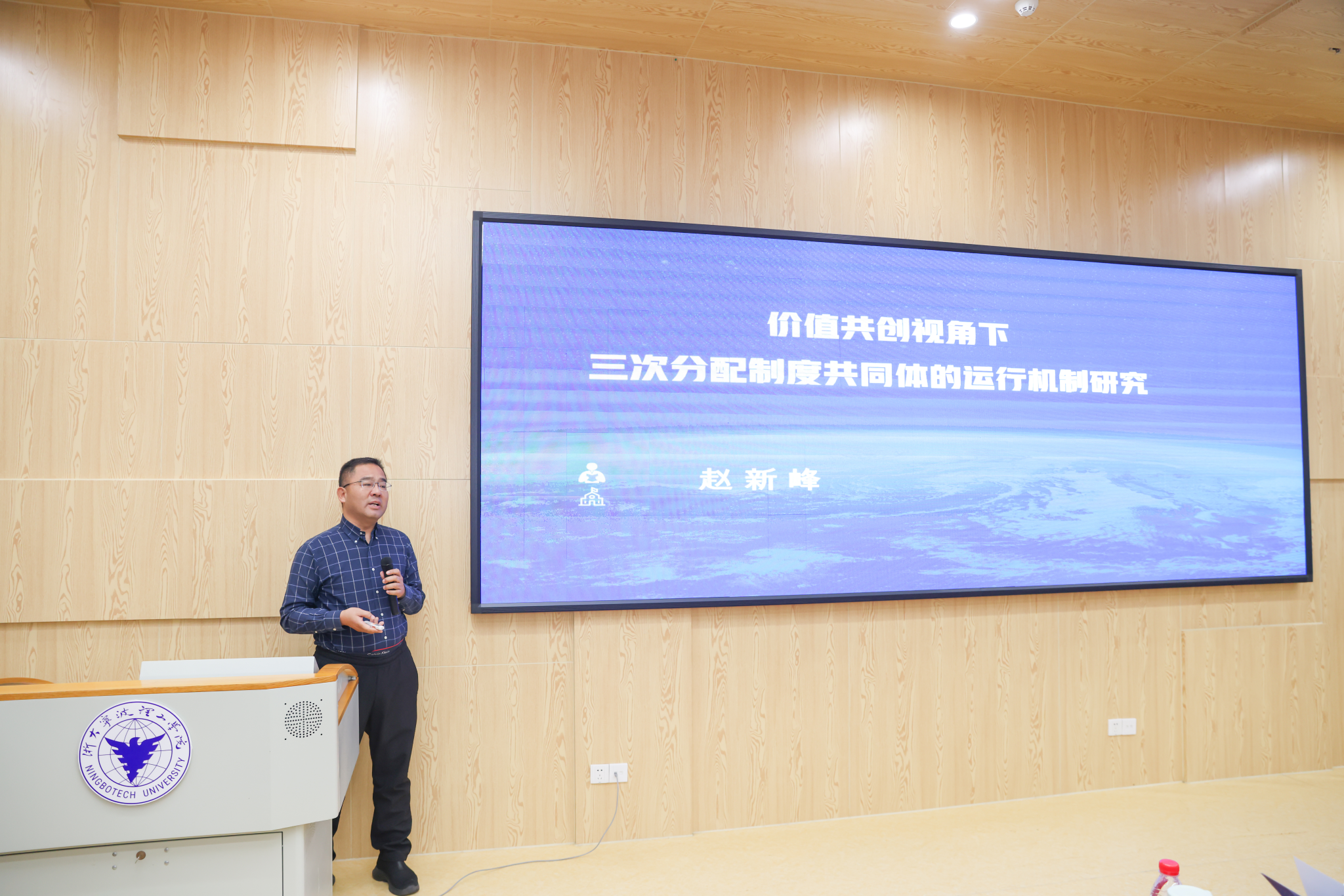 山东工yl23411永利官网登录区域协同中心主任赵新峰教授围绕《价值共创视角下三次分配制度共同体的运行机制研究》做了主旨发言。