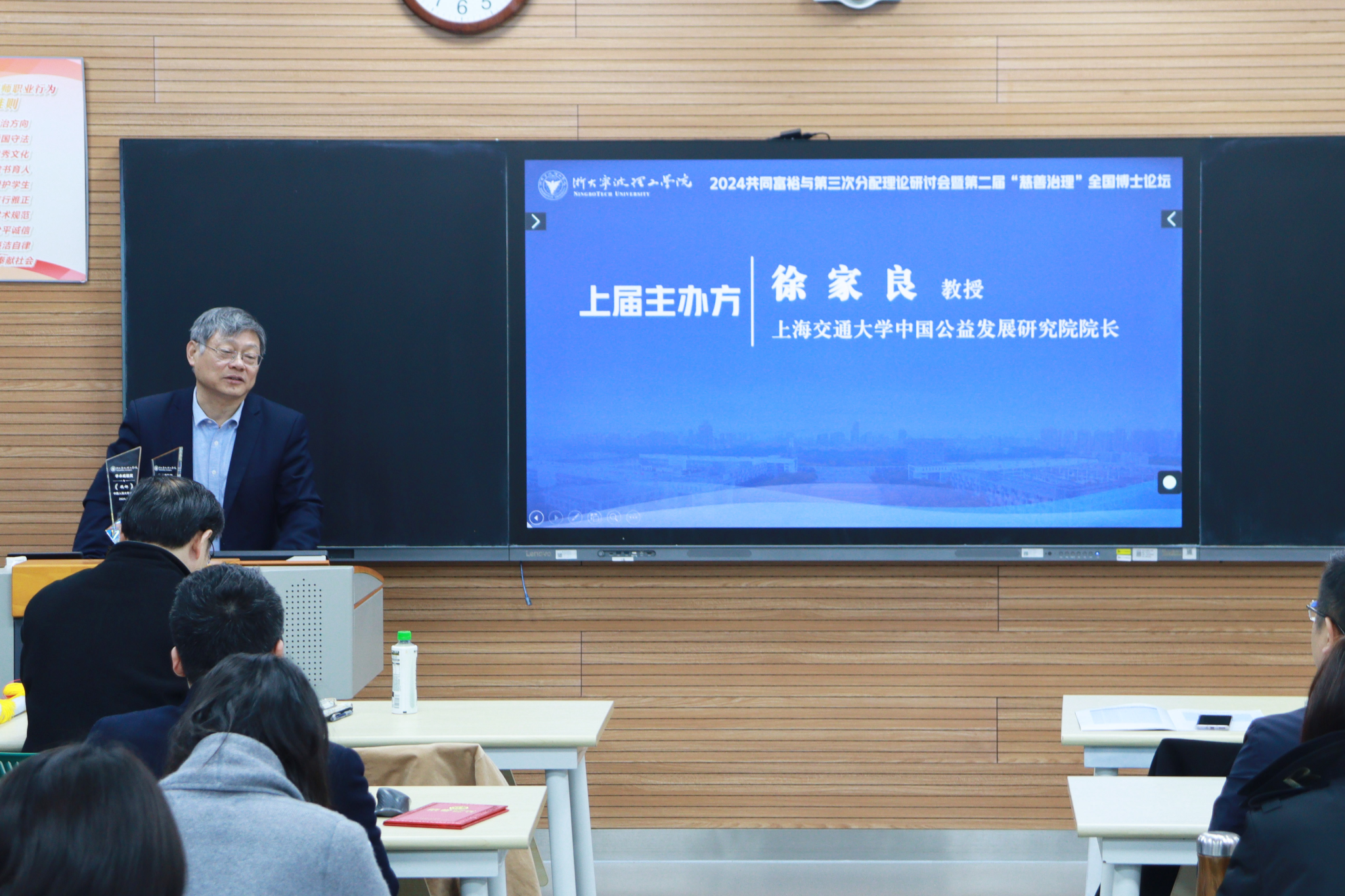 上海交通大学徐家良教授首先做了《第三次分配、互联网公开募捐平台与数字革命》的主旨报告。