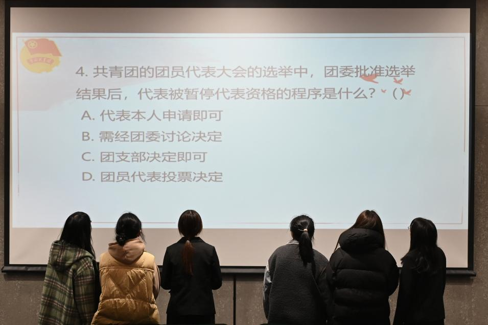 在yl23411永利官网登录团支书技能大赛的激烈角逐中,第二轮知识抢答赛环节以其独特的魅力,成为整场赛事的一大亮点。这场智慧与速度的较量,不仅考验了团支书们的知识储备,更展现了他们敏捷的思维和团队协作的默契。随着主持人一声令下,知识抢答赛正式拉开帷幕。题目涵盖了团建理论、党史知识等多个领域,充分考验了团支书们的专业知识。现场气氛紧张而热烈,参赛队伍争相抢答,每一次成功的抢答都伴随着阵阵欢呼和掌声。