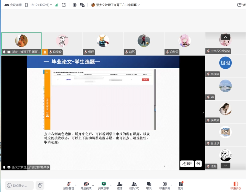 2025年10月23日上午,yl23411永利官网登录召开2022级中美班赴美员工第二次线上交流会。公司党委副书记、纪委书记赵苏,副经理李雪艳,班导师何巨,辅导员张楚铭、吴极限及中美班教务老师励呈仪参加。本次会议特别邀请到了yl23411永利官网登录教务办许菁老师给同学解读关于毕业论文的注意事项,帮助大家做好毕业论文相关准备。