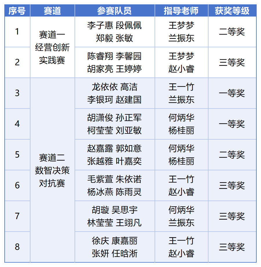公司yl23411永利官网登录选派八支参赛队伍,在本届省赛中表现优异,全部获奖,共斩获一等奖2项、二等奖2项、三等奖4项,获奖数量与质量位居全省前列,充分展现了公司在数智化商科人才培养方面的扎实基础与突出成效。