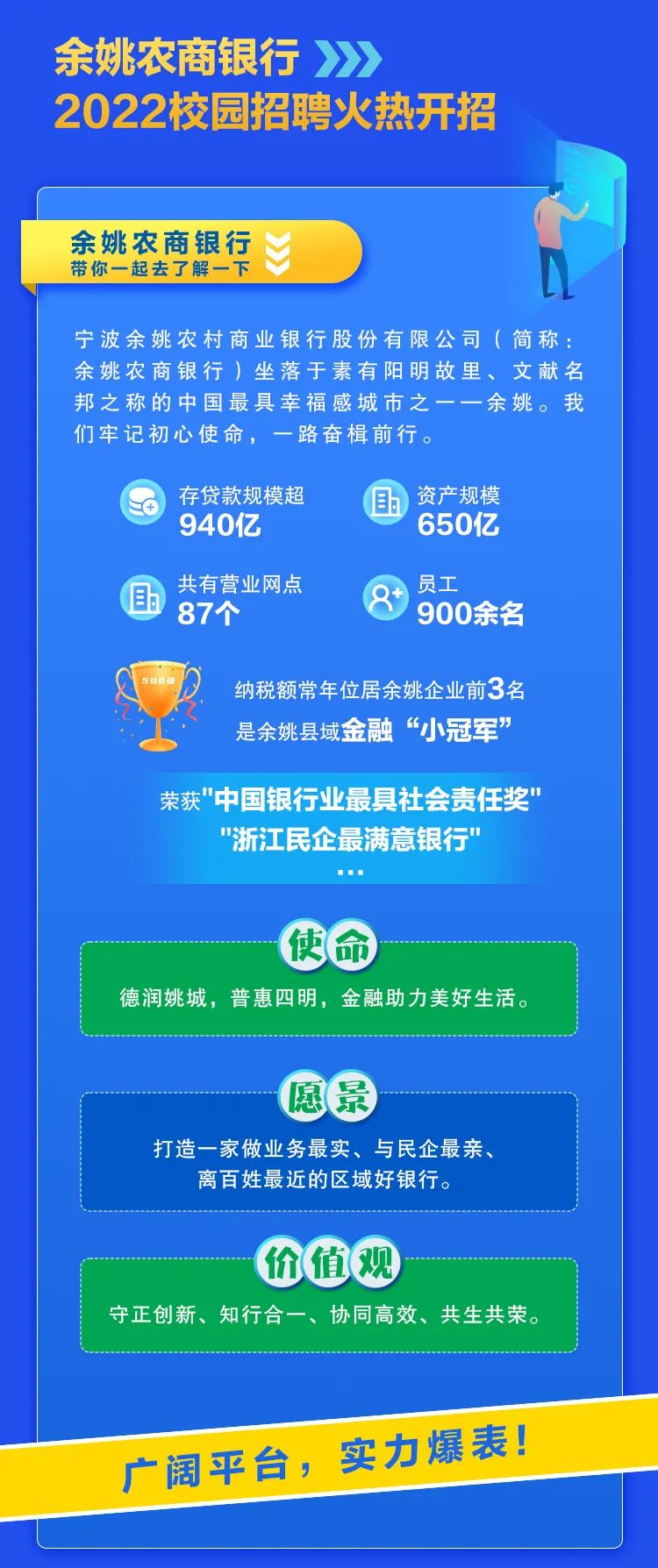 【招聘信息】“余”你同行,“姚”想未来——余姚农商银行2022校园招聘火热开招!