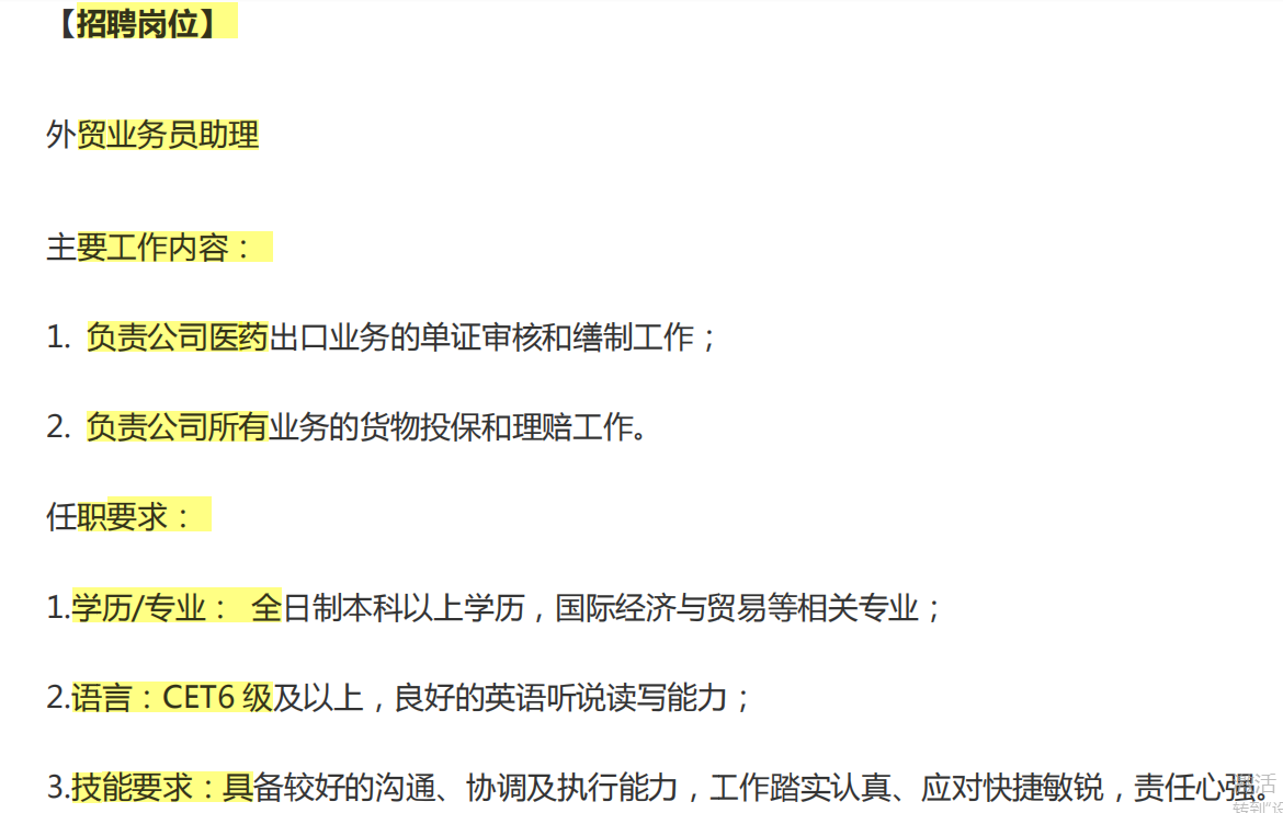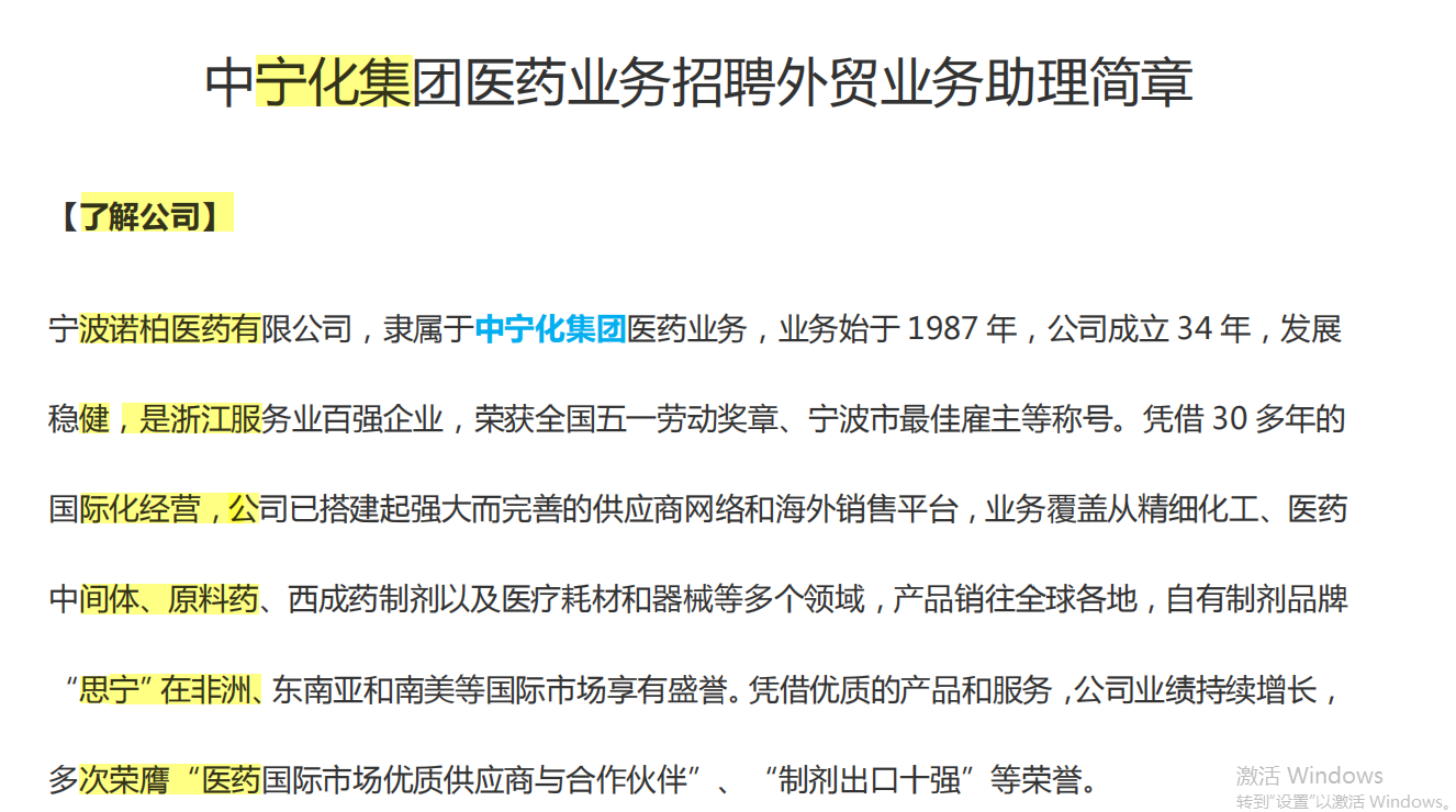 【招聘信息】中宁化集团医药业务招聘外贸业务助理