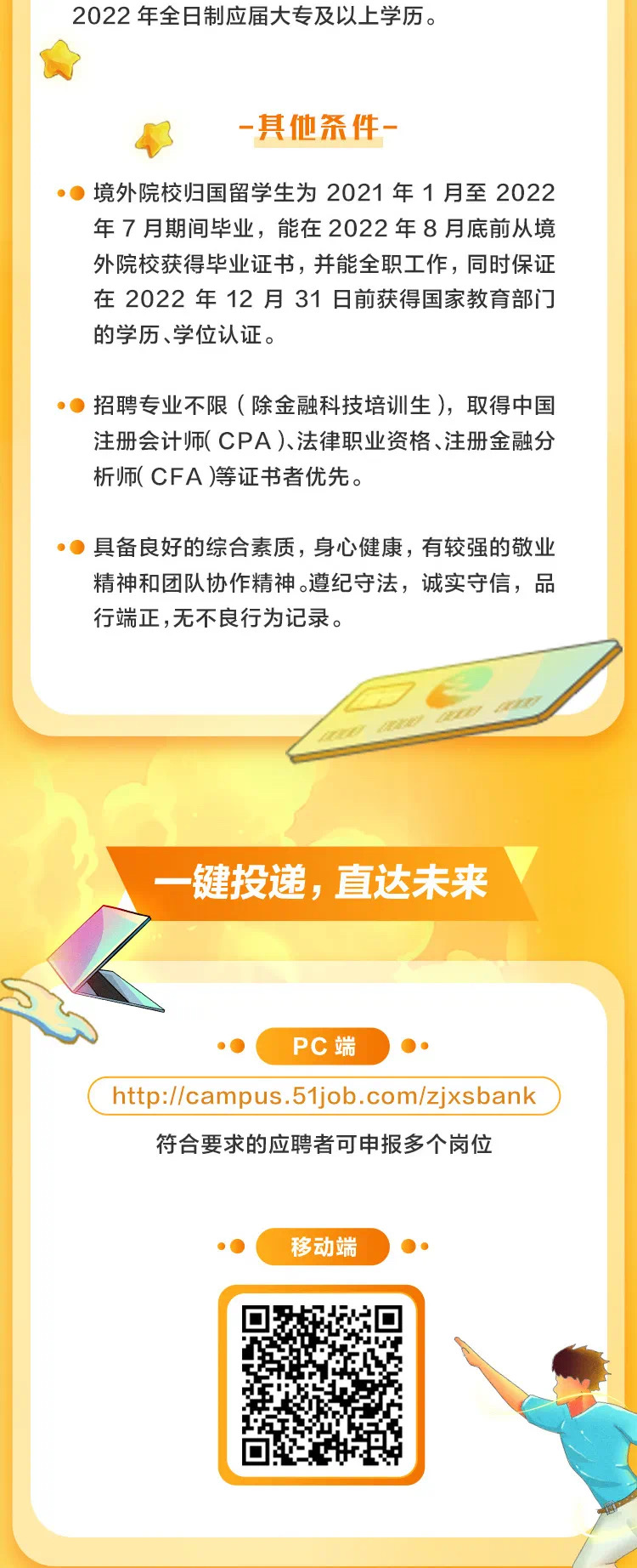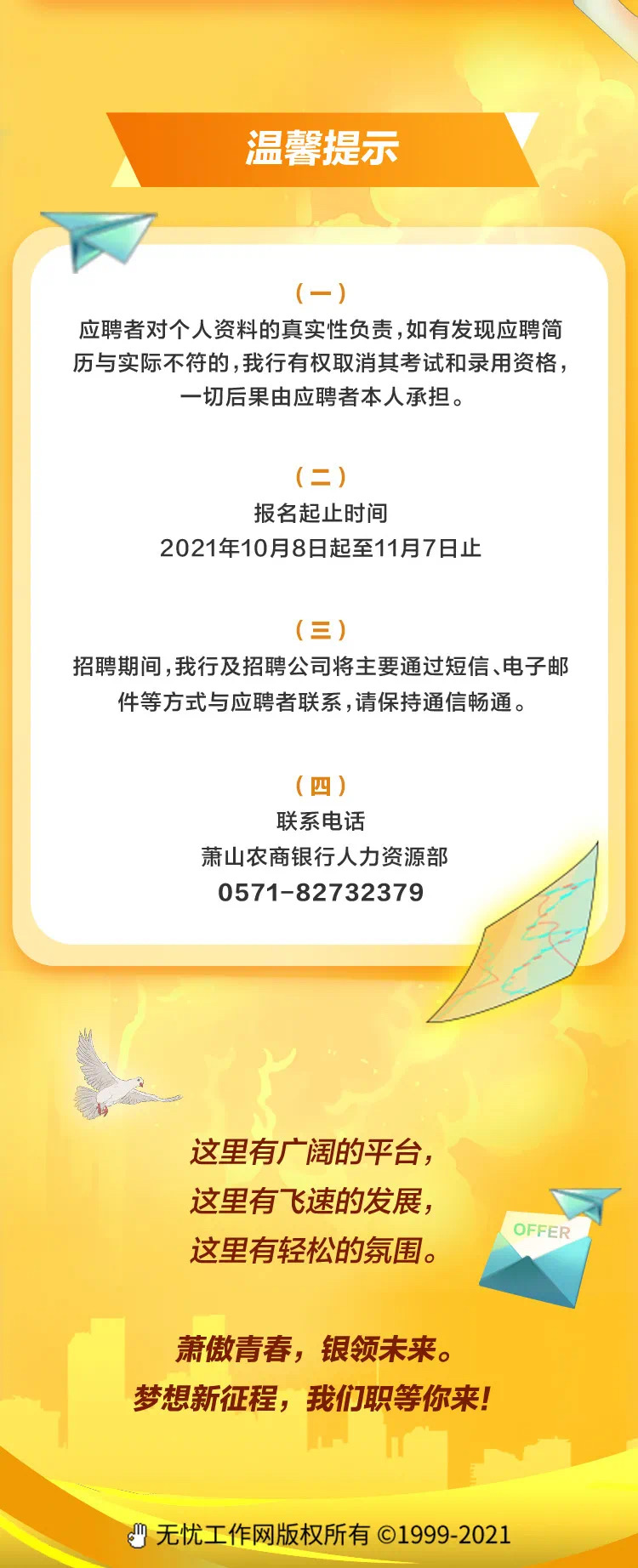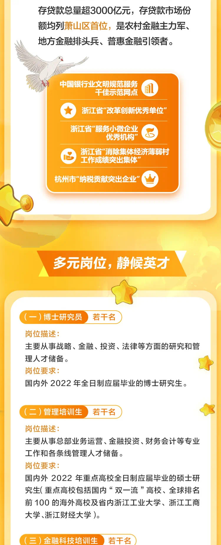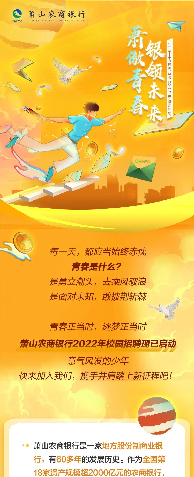 【招聘信息】萧山农商银行2022年校园招聘启动!