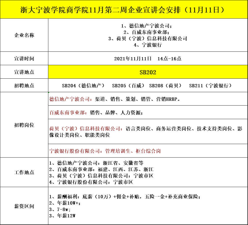 本周邀请了德信地产、百威中国、荷贝、宁波银行四家企业来公司开展宣讲会!!!