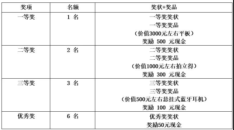 2、决赛12名选手中设置一等奖1名,二等奖2名,三等奖3名,优秀奖6名。现场收集评分表统计分数出结果。
