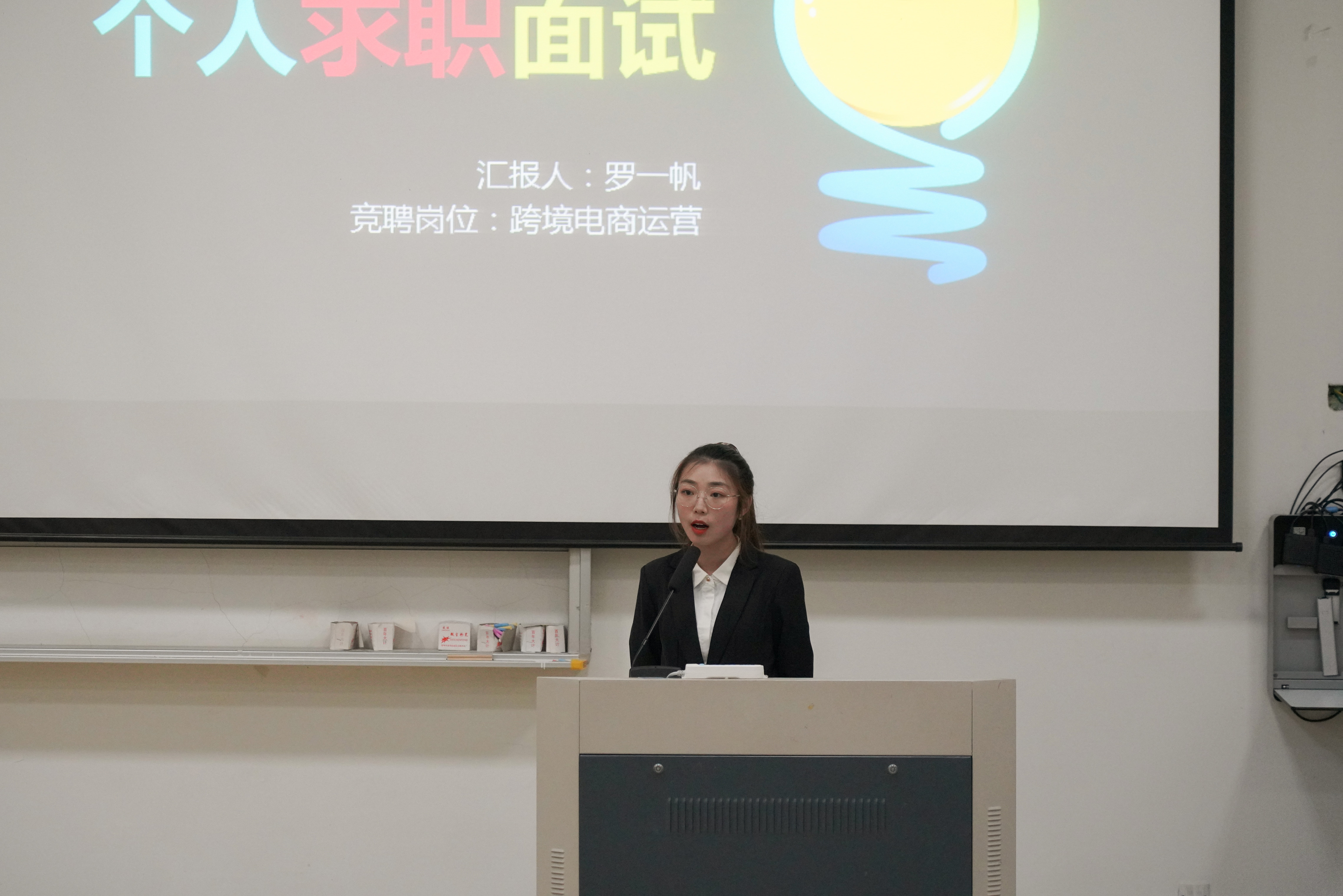 随后,11名决赛选手按照事先抽签顺序依次上台做了自我求职展示,选手们围绕求职意向企业岗位向各位评委做了自我介绍,并就应聘岗位陈述了所具备的知识素质、能力素质、品德素质。现场评委针对每位参赛选手进行了提问,并结合实际指出了面试环节中存在的不足之处。