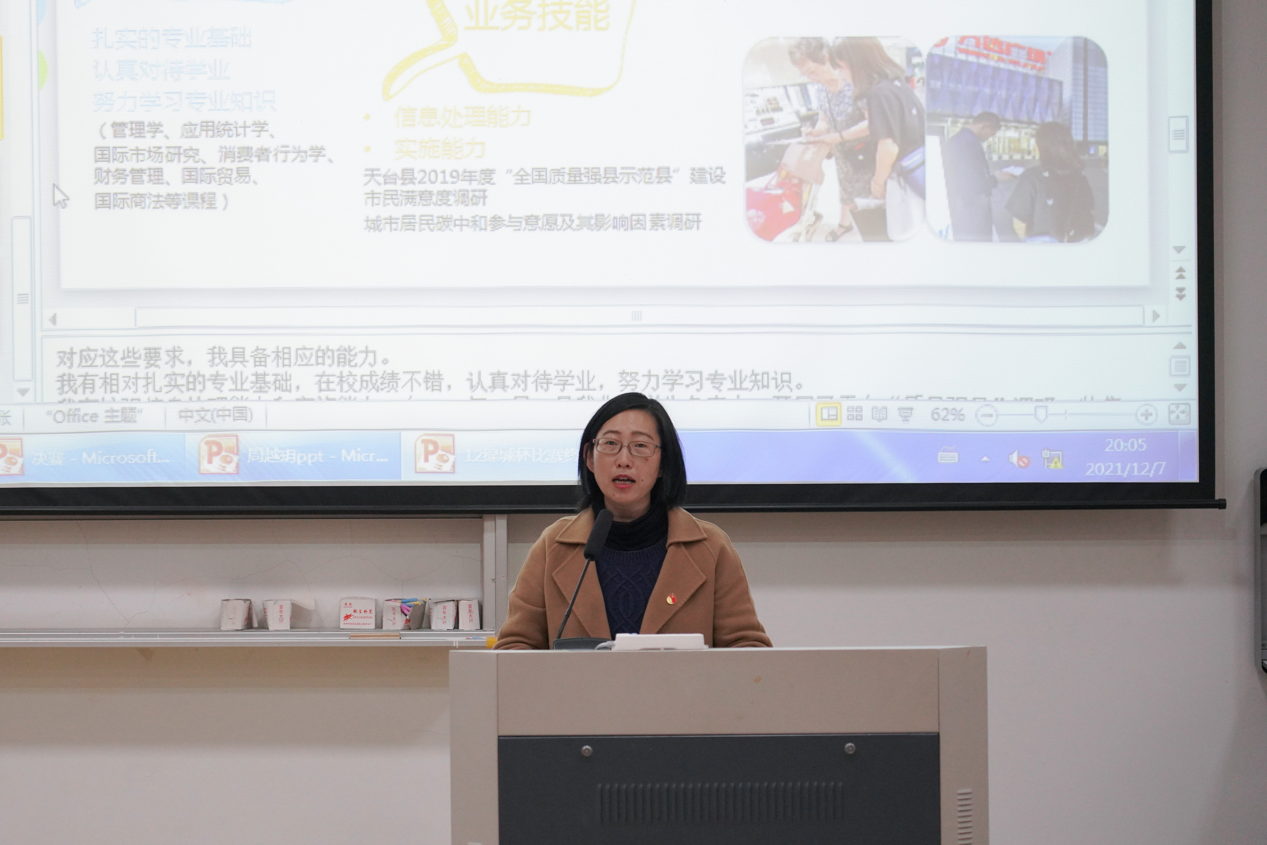 赛后,吴琼老师做了总结讲话,她代表公司感谢绿城中国浙东区域公司对本次活动的大力支持。她认为本次求职模拟面试大赛严格按照企业招聘面试流程,通过简历指导与制作,无领导小组讨论面试及最终的模拟面试环节,同学们对求职的过程有了深入的了解,有助于掌握面试技巧,提高面试本领,提升就业的综合素质。